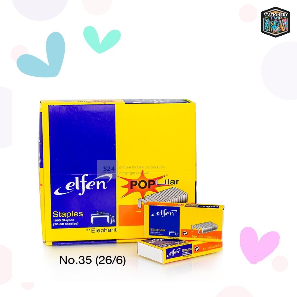 ELFEN ลวดเย็บ เบอร์ 10 และ 35 เย็บกระดาษ ลูกแม็ก รุ่น Popular elfen ของแท้ ( 1 กล่องใหญ่ มี 24 กล่องเล็ก )