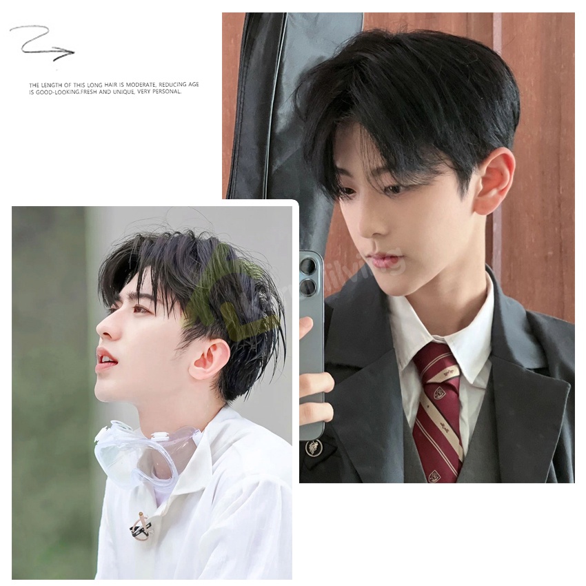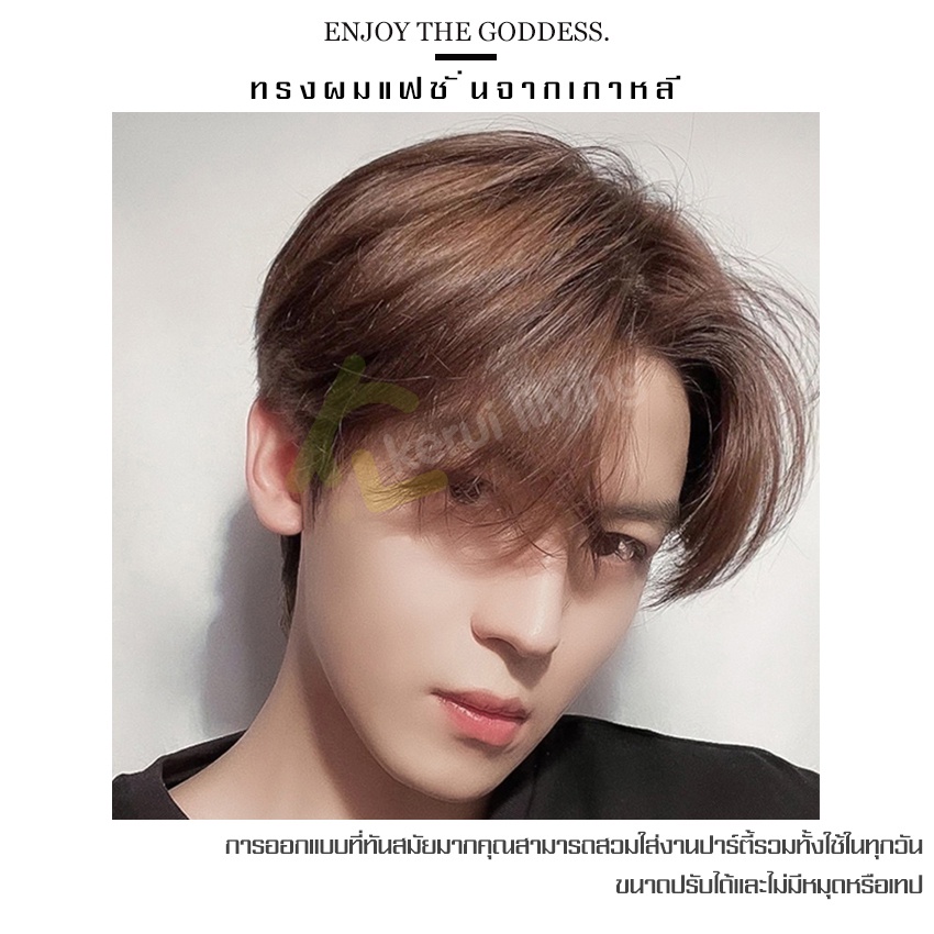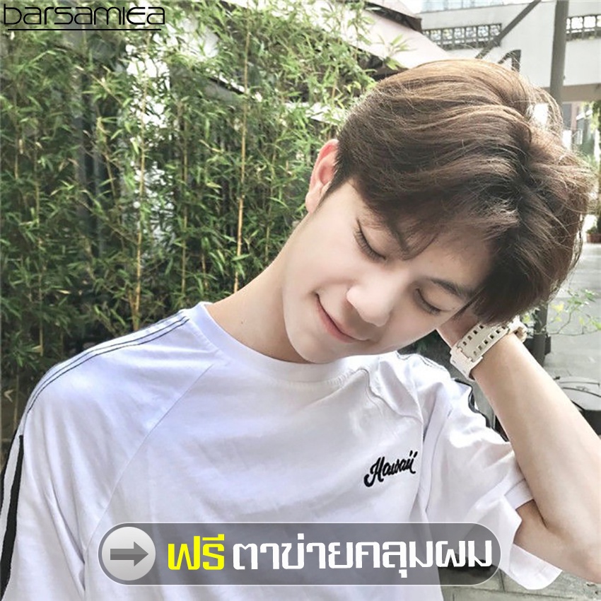 Barsamiea แฮร์พีชผมสั้น วิกผม วิกผมสั้น ผมปลอม วิกผมปลอม สำหรับผู้ชาย มี 3 สีให้เลือก วิกผมแสกกลาง วิกผมคอสเพลย์