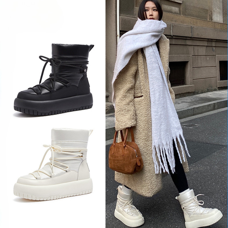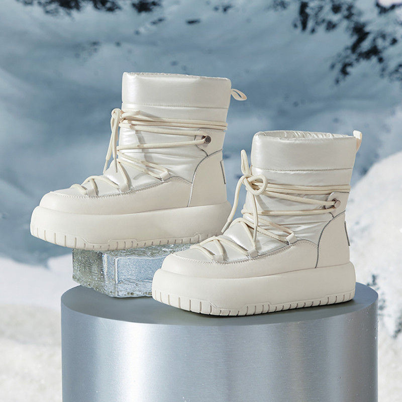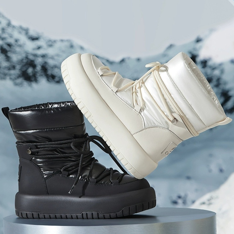 CAMEL CROWN รองเท้าสกีกันน้ำสำหรับผู้หญิง รองเท้าบู๊ตหิมะกลางแจ้งแบบกำมะหยี่ที่ให้ความอบอุ่น