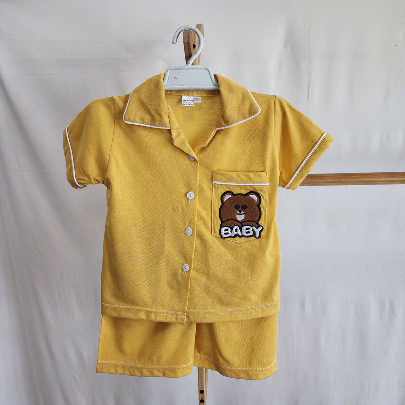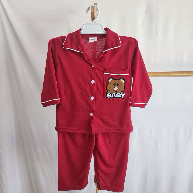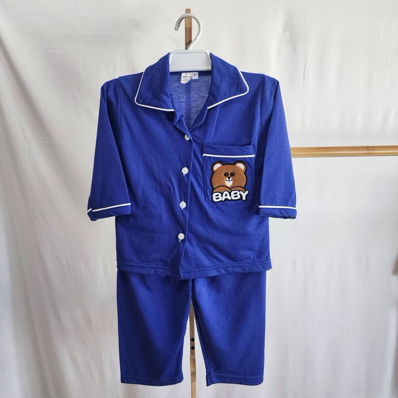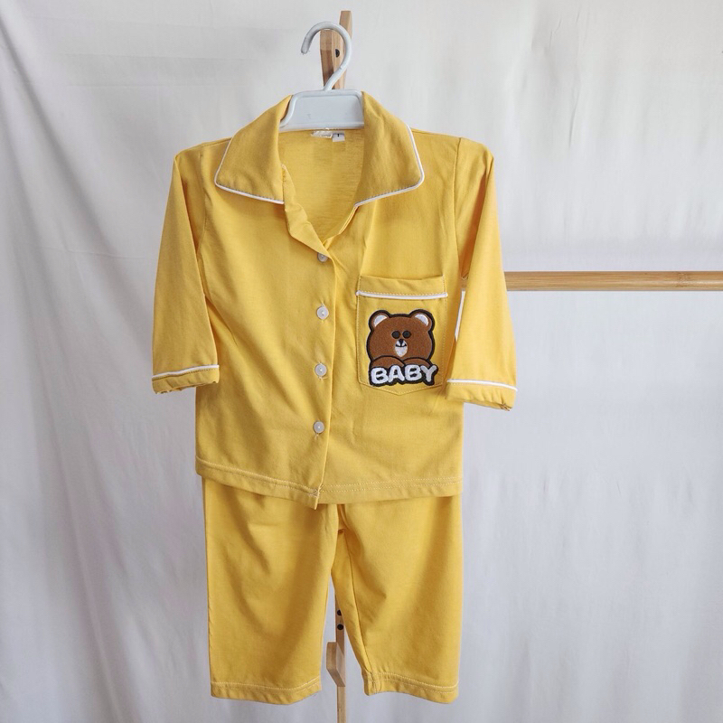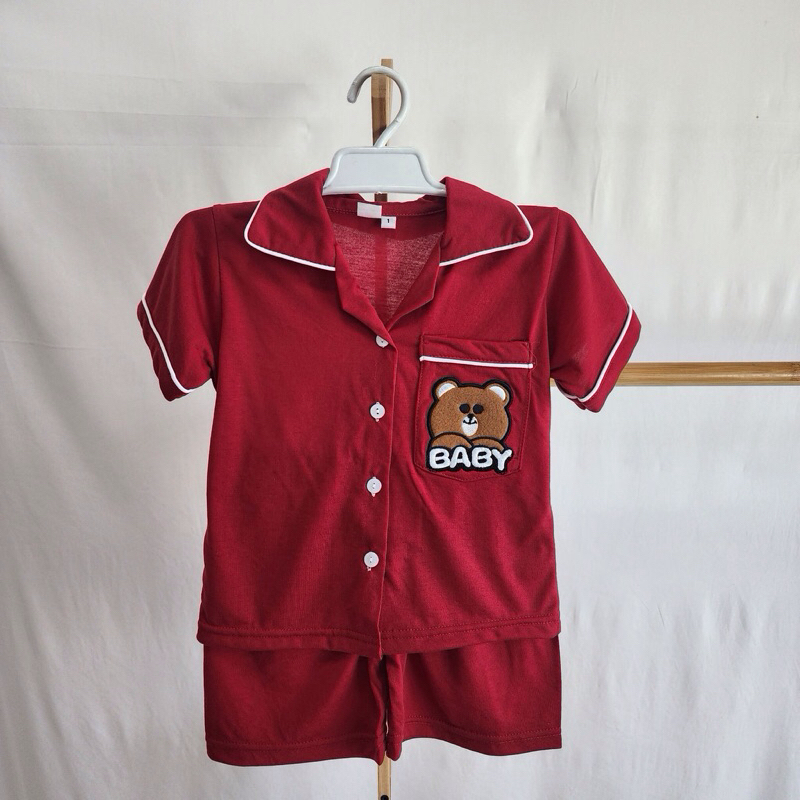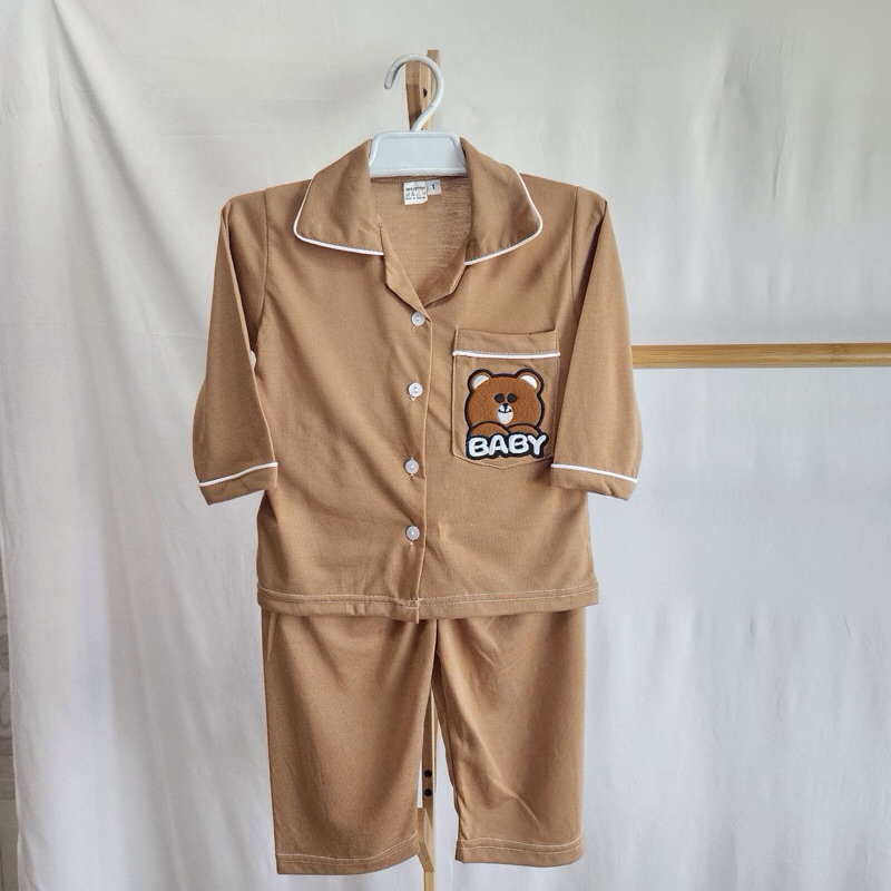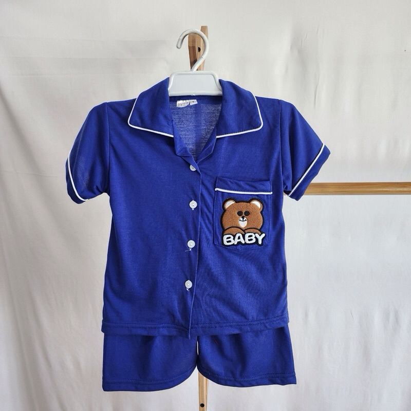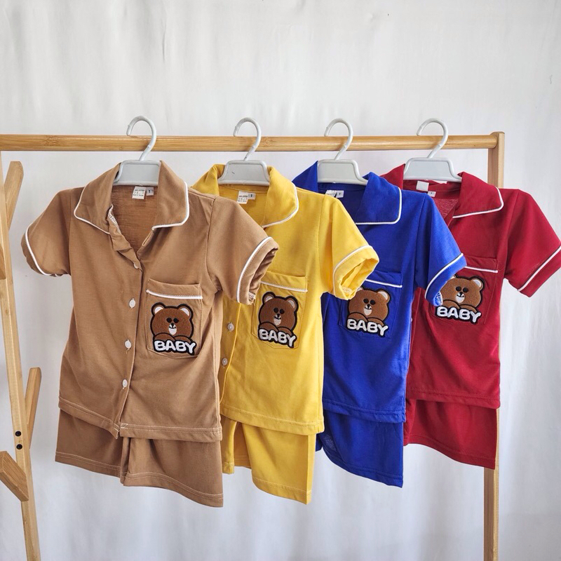 ชุดเด็กผ้ายืดสีพื้นปักหมี ขาสั้นแขนสั้น ขายาวแขนยาว พร้อมส่ง