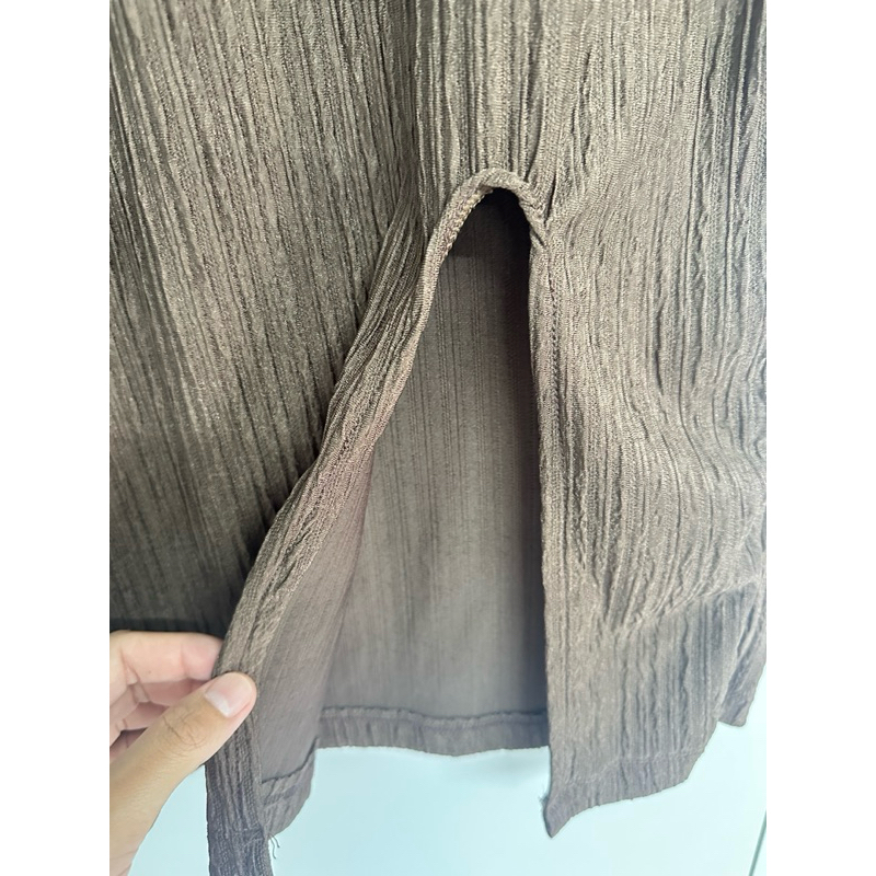 เสื้อสีน้ำตาลเข้มแหวกชาย