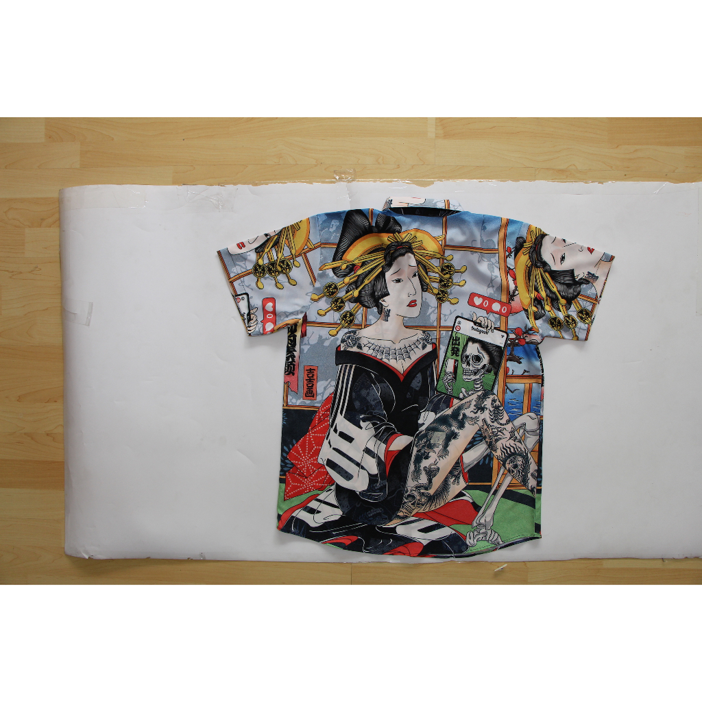 ⚡ ส่งฟรี⚡เสื้อเชิ้ตแขนสั้น งานต่อลาย Mr-Junko ผ้าซาตินนิ่มใส่สบายไม่ร้อน PC-765