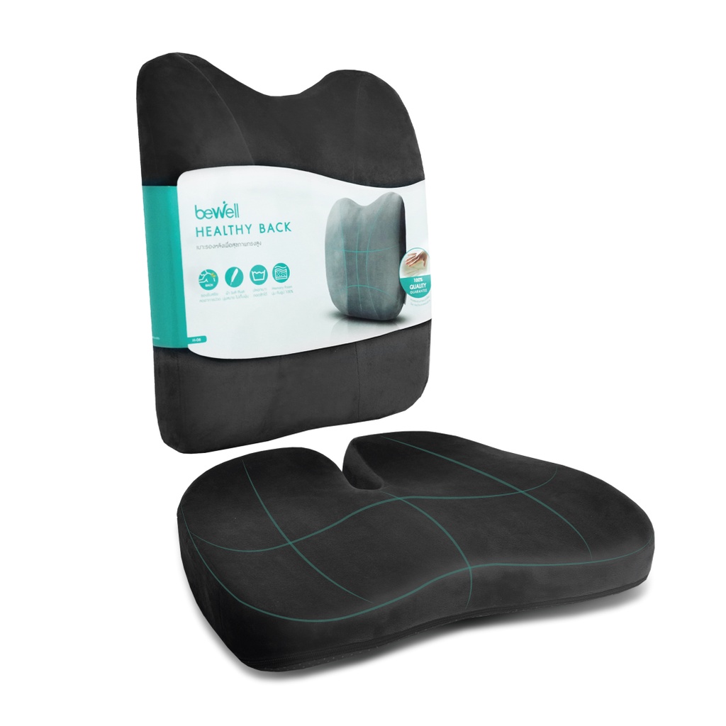 [รุ่นอัพเกรด] Bewell เซ็ตเบาะรองหลังทรงสูงและเบาะรองนั่งทำงานเพื่อสุขภาพ รุ่น Gentle Soft plush