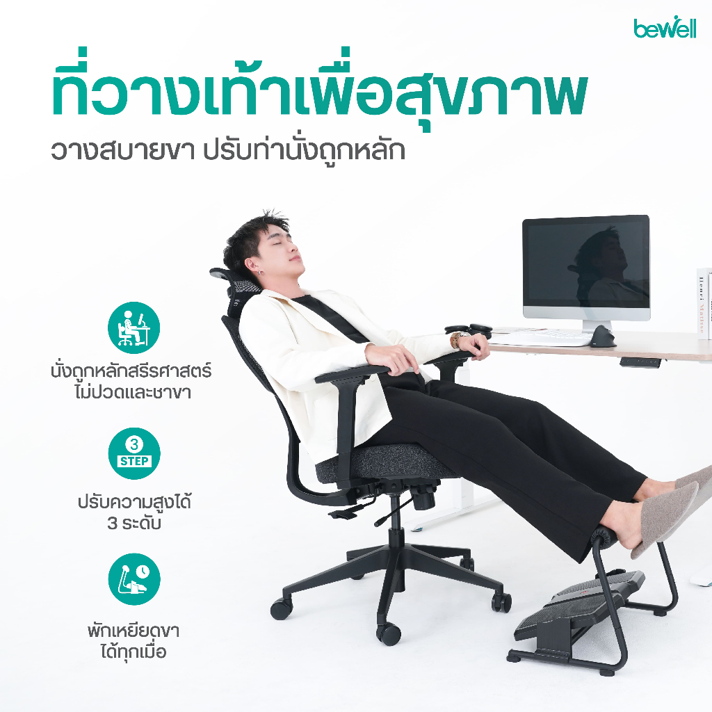 Bewell ที่วางเท้า 3 in 1 วางได้ทั้งแบบราบและเหยียดขา เพิ่มการเผาผลาญ ปรับความสูงได้ บอกลานั่งขาลอย