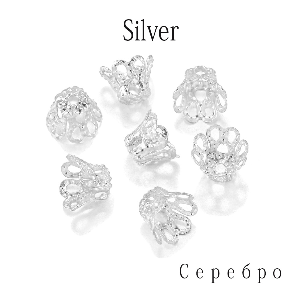 ลูกปัดทรัมเป็ตโลหะสีบรอนซ์โบราณ100ชิ้น/ล็อต แบบดอกไม้กลวง สีเงิน/ทอง สำหรับDIYเครื่องประดับ แฮนด์เมด