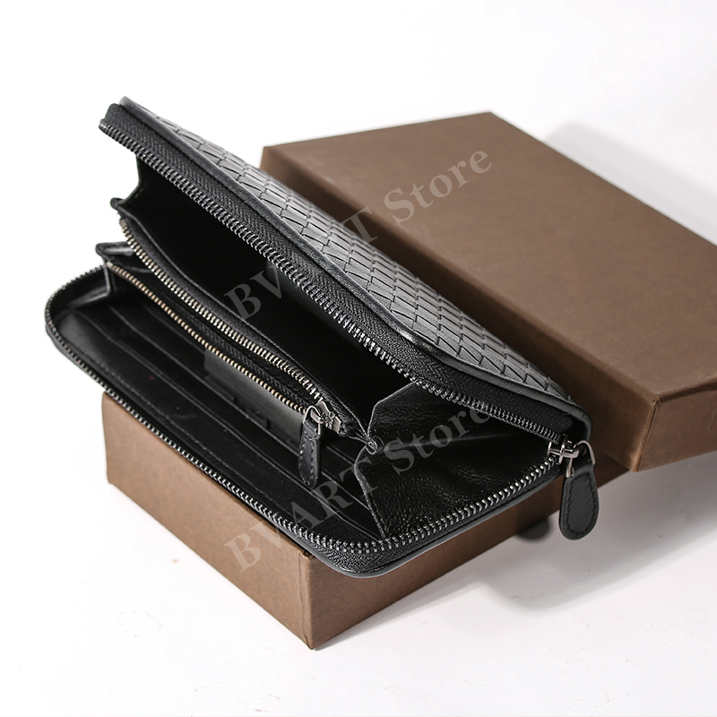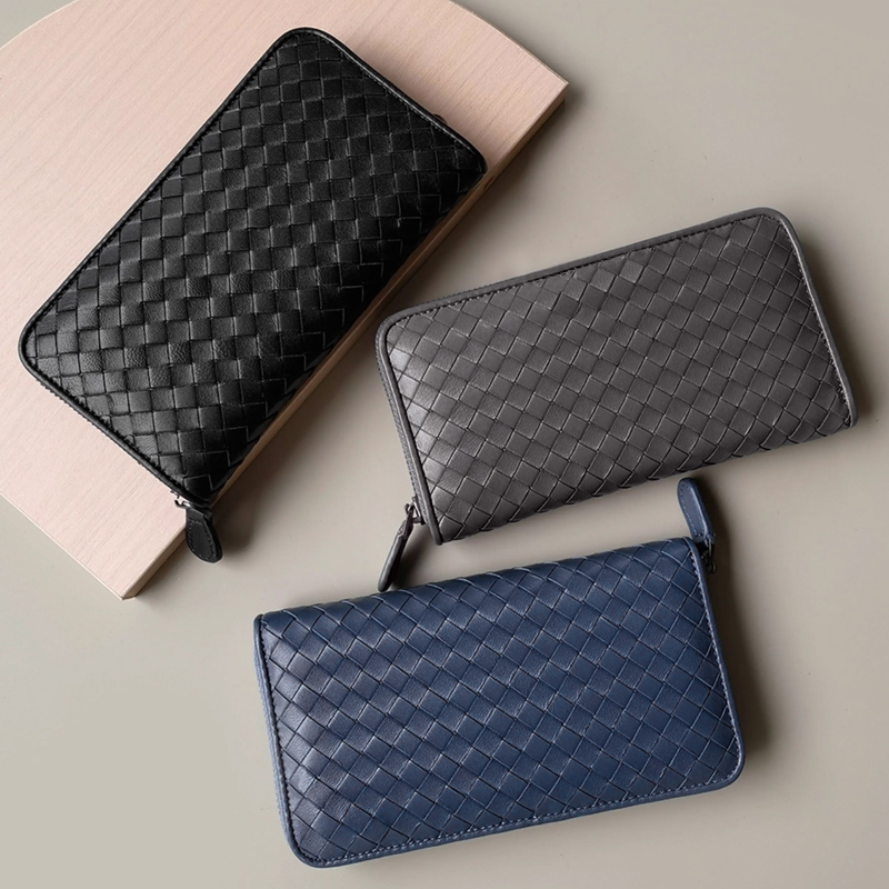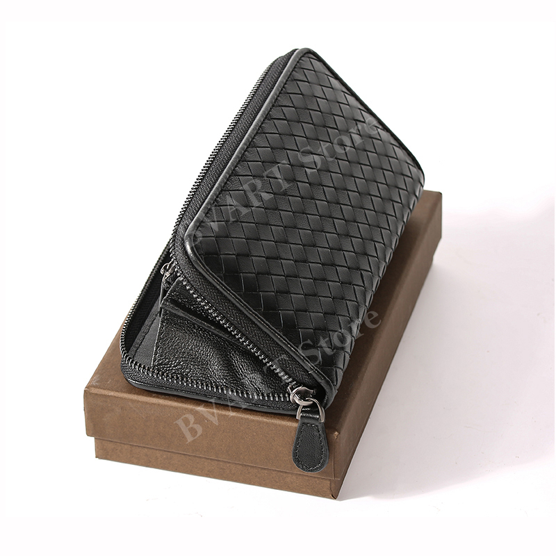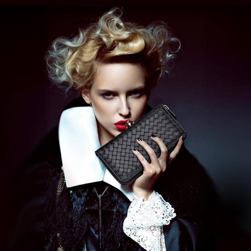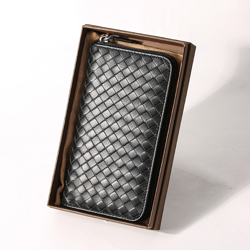 กระเป๋าสตางค์ซิปยาวหนังแกะทอ Multi-Function Storage กระเป๋าโทรศัพท์มือถือแฟชั่น Simple Couple Style