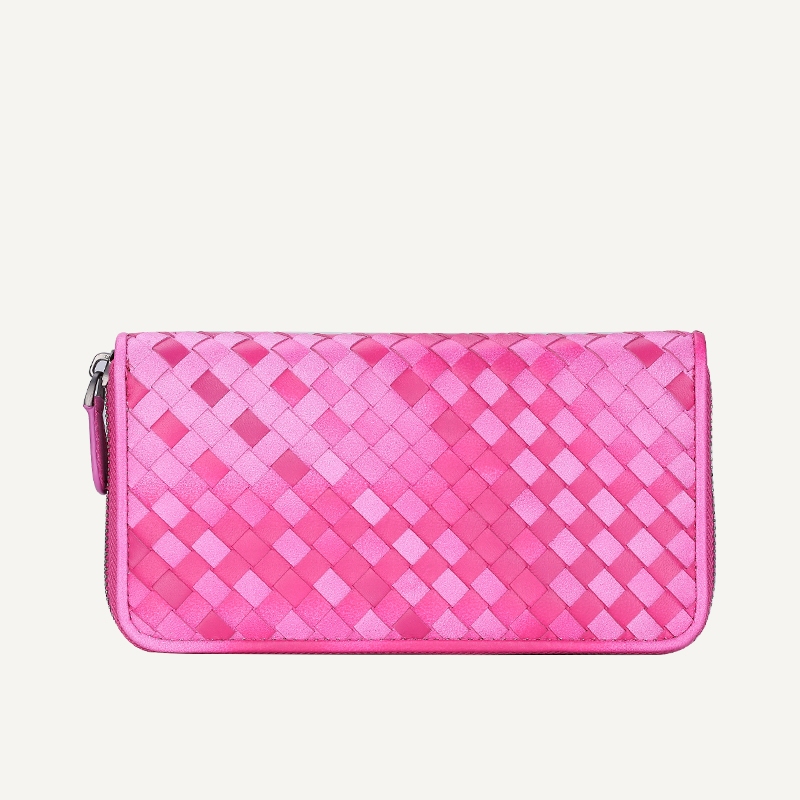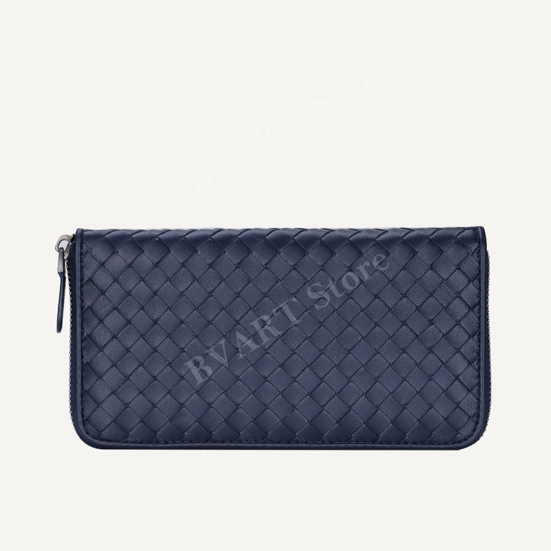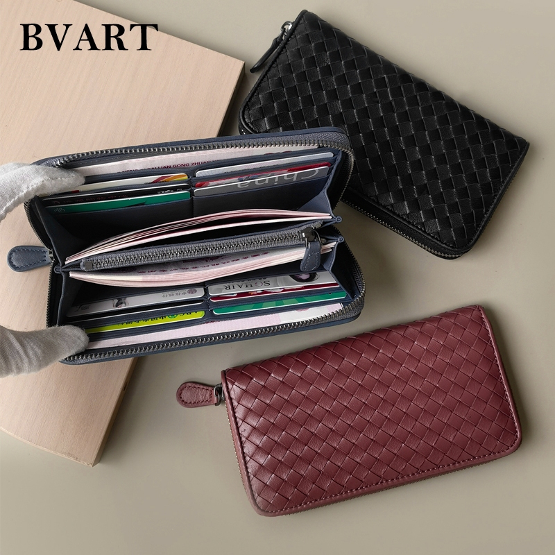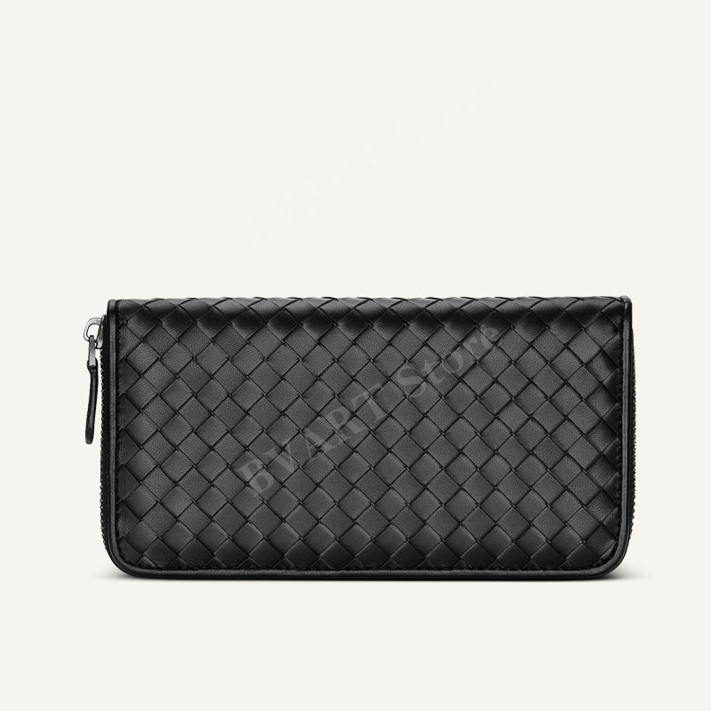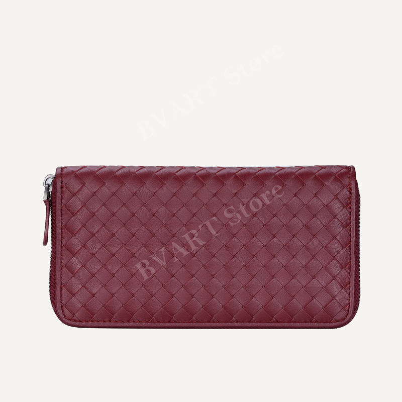 กระเป๋าสตางค์ซิปยาวหนังแกะทอ Multi-Function Storage กระเป๋าโทรศัพท์มือถือแฟชั่น Simple Couple Style