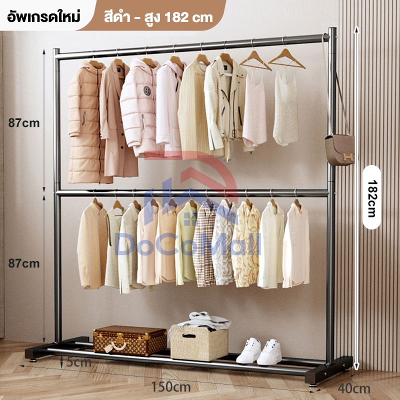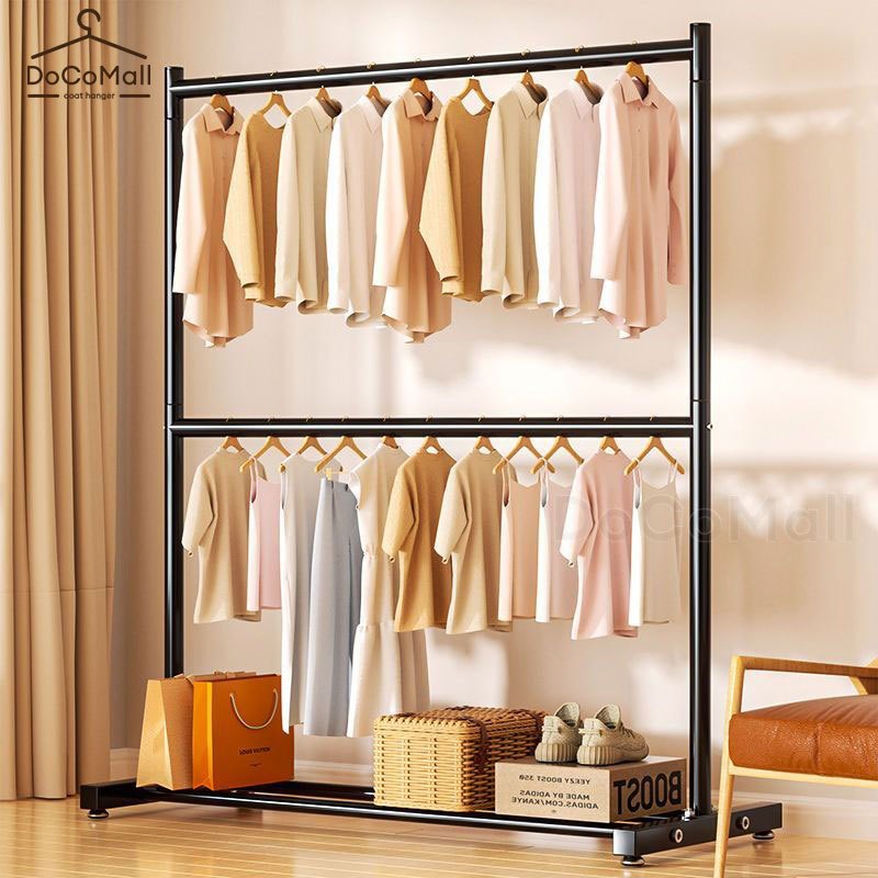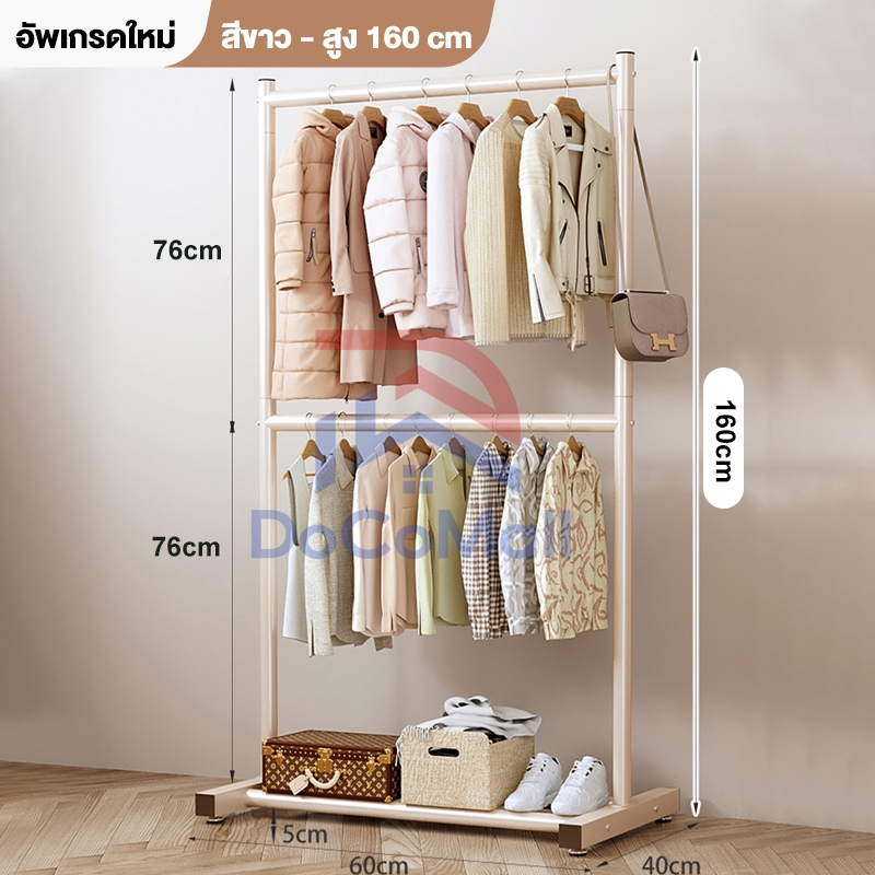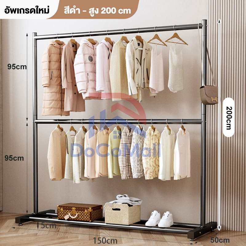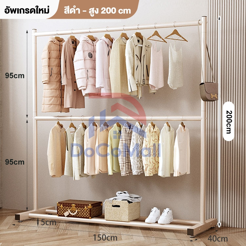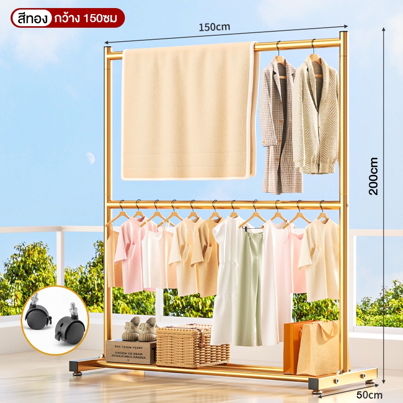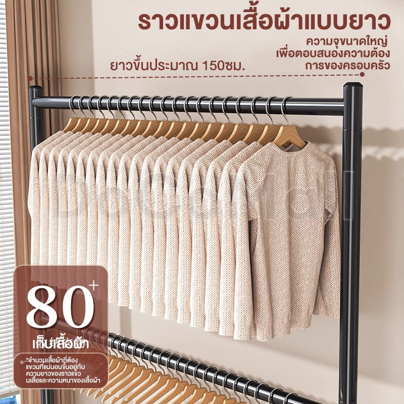 [ราว 2ชั้น] ราวผ้า ราวตากผ้า 2 ชั้น ตะ ขอแขวนเสื้อ แบบมินิมอล สำหรับคอนโด รางตากแข็งแรง เเขวนได้50ตัว+ พร้อมส่ง