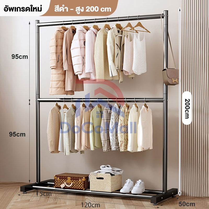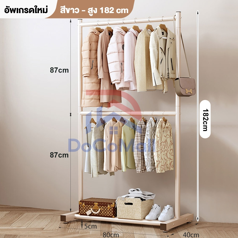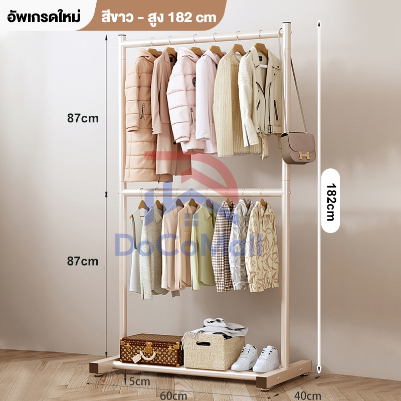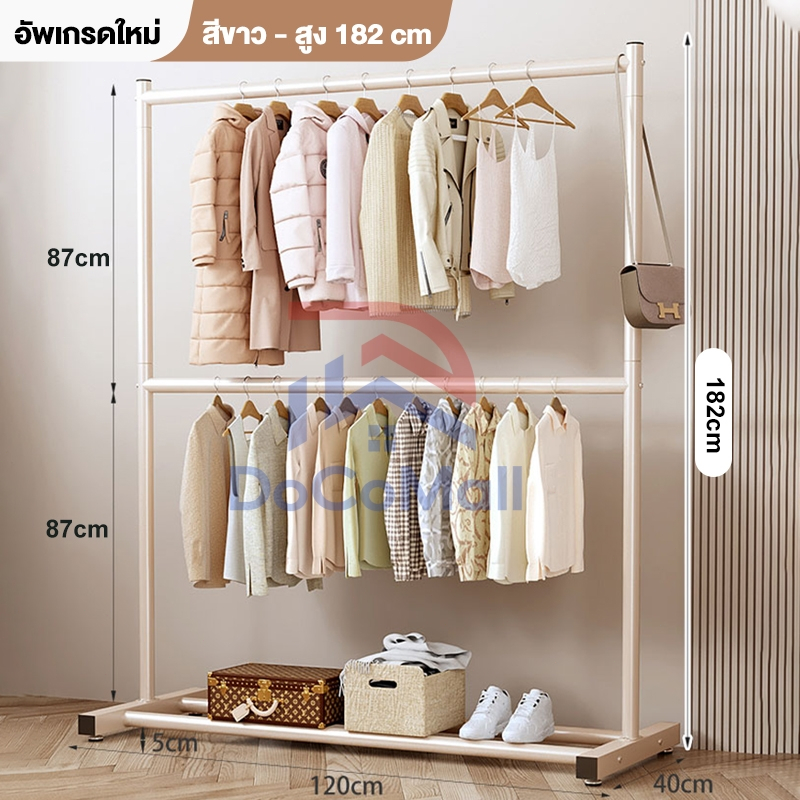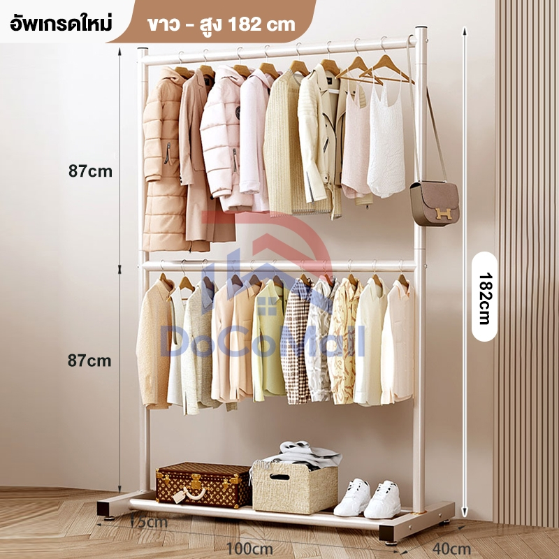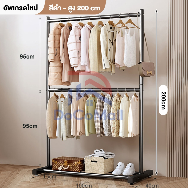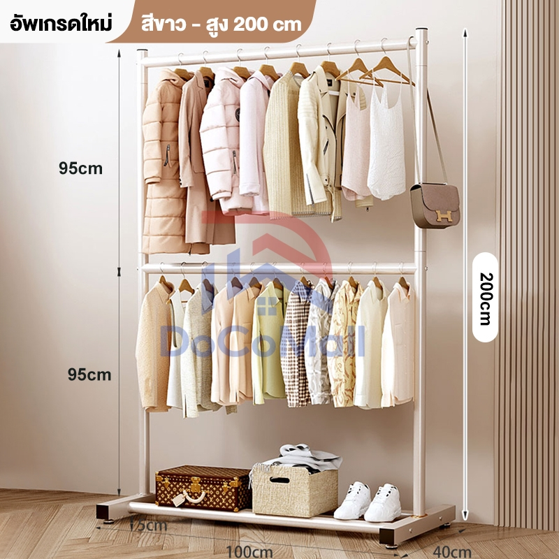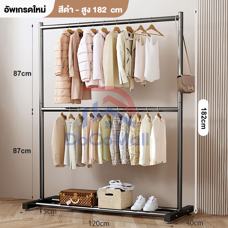 [ราว 2ชั้น] ราวผ้า ราวตากผ้า 2 ชั้น ตะ ขอแขวนเสื้อ แบบมินิมอล สำหรับคอนโด รางตากแข็งแรง เเขวนได้50ตัว+ พร้อมส่ง