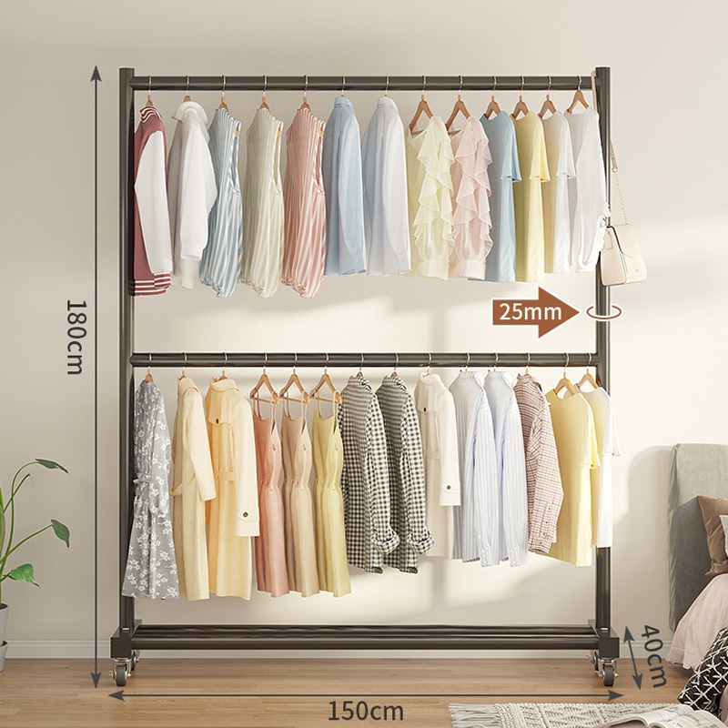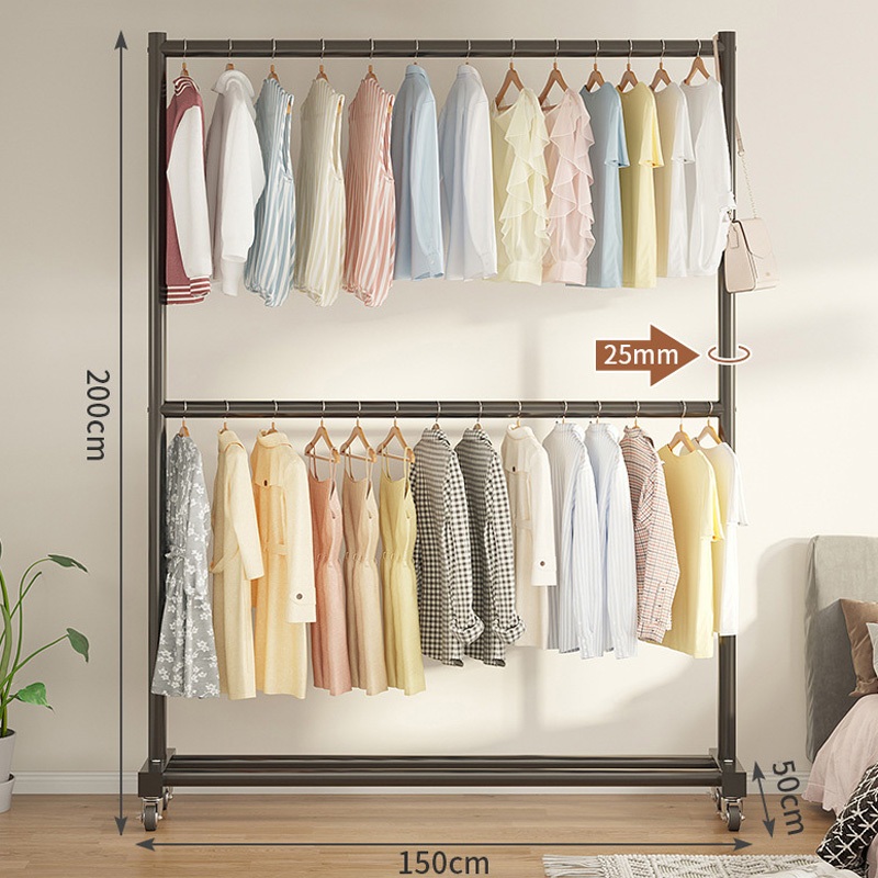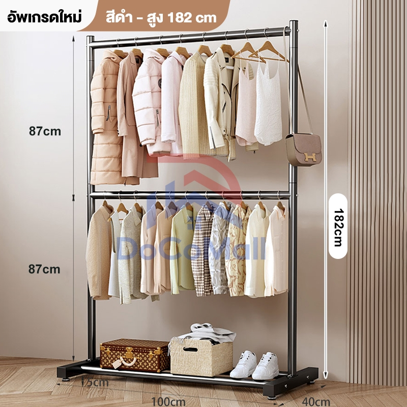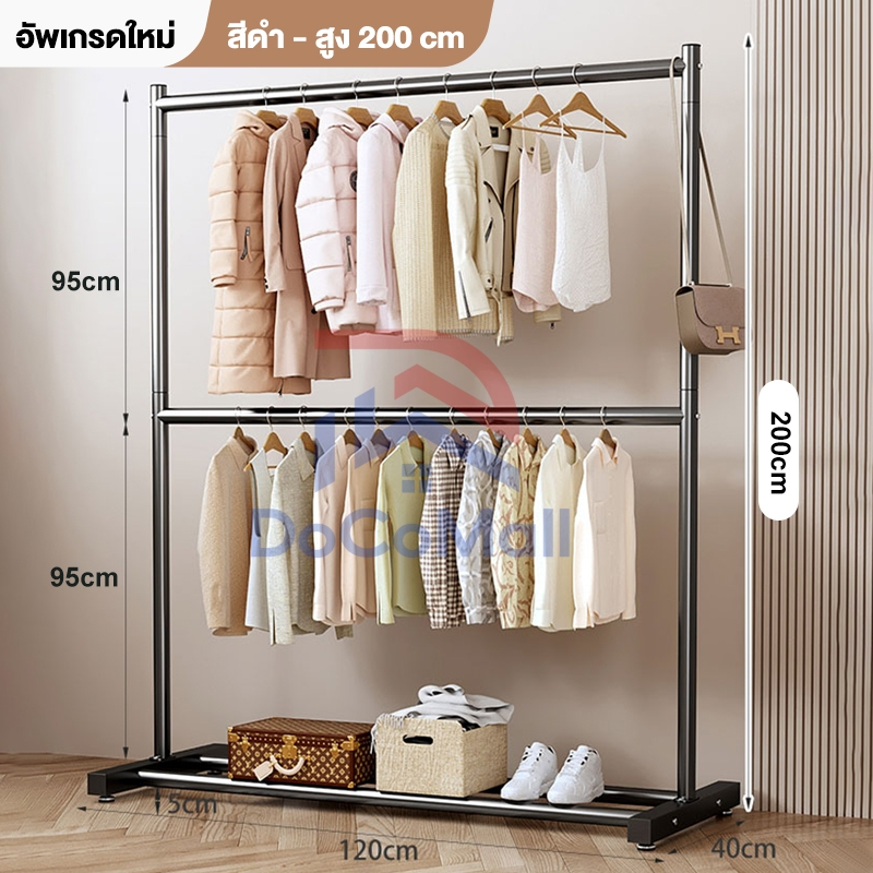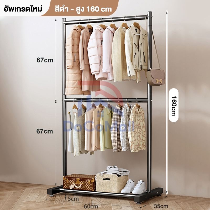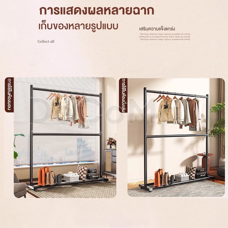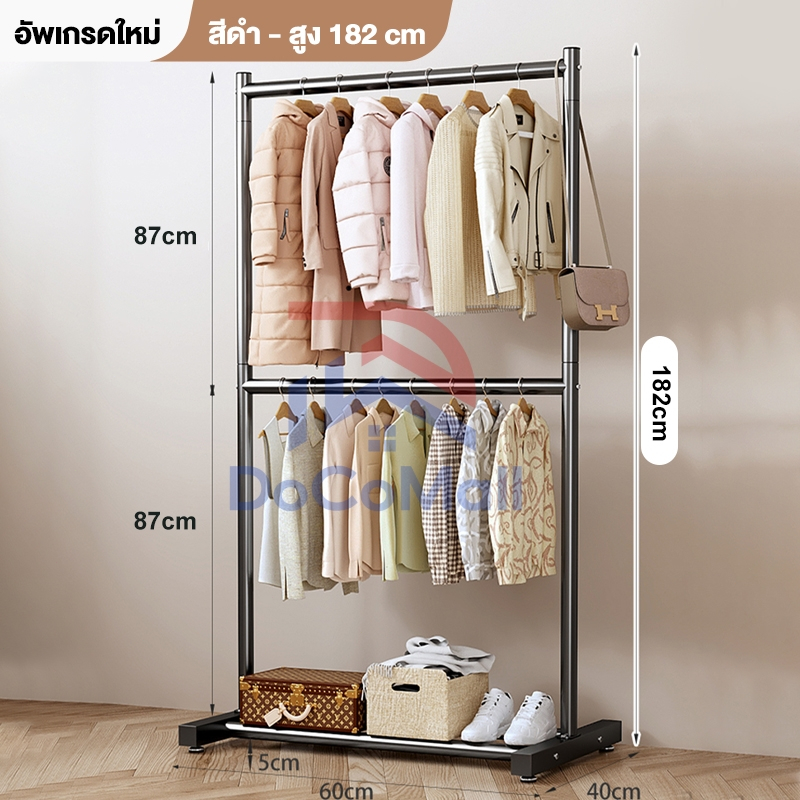 [ราว 2ชั้น] ราวผ้า ราวตากผ้า 2 ชั้น ตะ ขอแขวนเสื้อ แบบมินิมอล สำหรับคอนโด รางตากแข็งแรง เเขวนได้50ตัว+ พร้อมส่ง