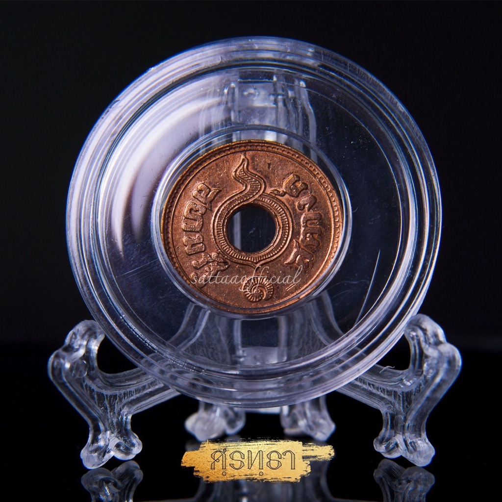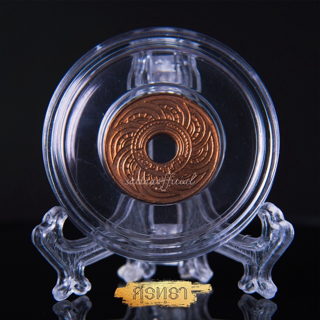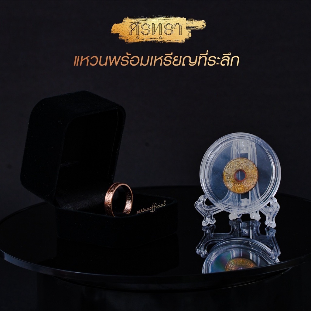 แหวนสตางค์รูลายกงจักร ปี 2495 แหวนทำจากเหรียญ ได้แหวนและเหรียญ พร้อมกล่องและตลับสำหรับตั้งโชว์