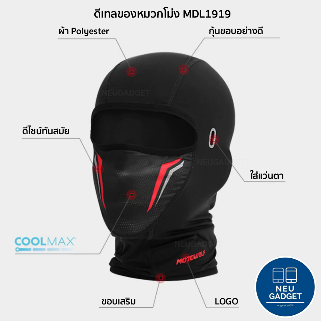 [ส่งจากไทย❗️] Motowolf MDL1919 Coolmax โม่งกันแดด โ ม่งสำหรับใส่ขับขี่มอเตอร์ไซค์ หมวกโม่ง ระบายอากาศดี มีรูเสียบขาแว่น