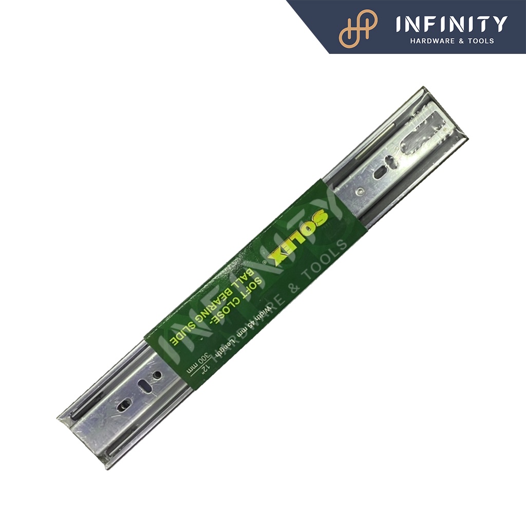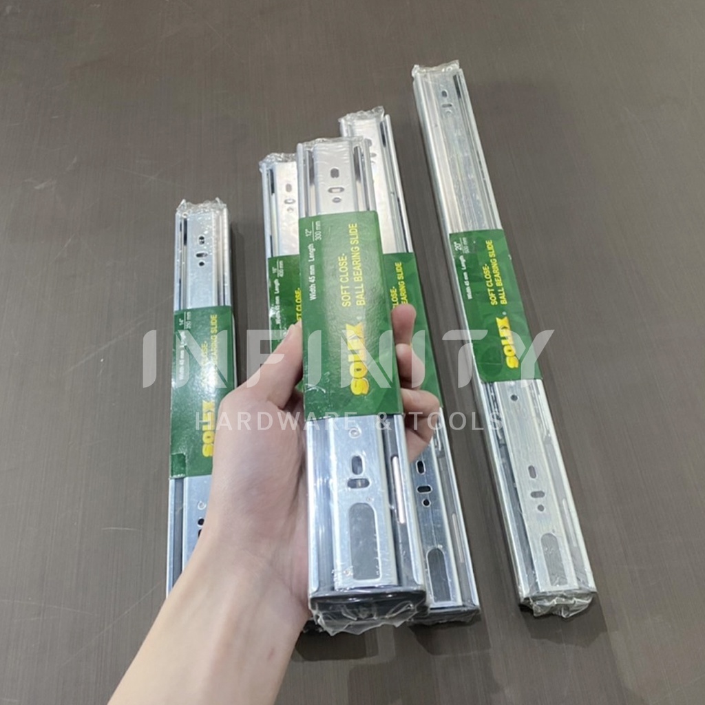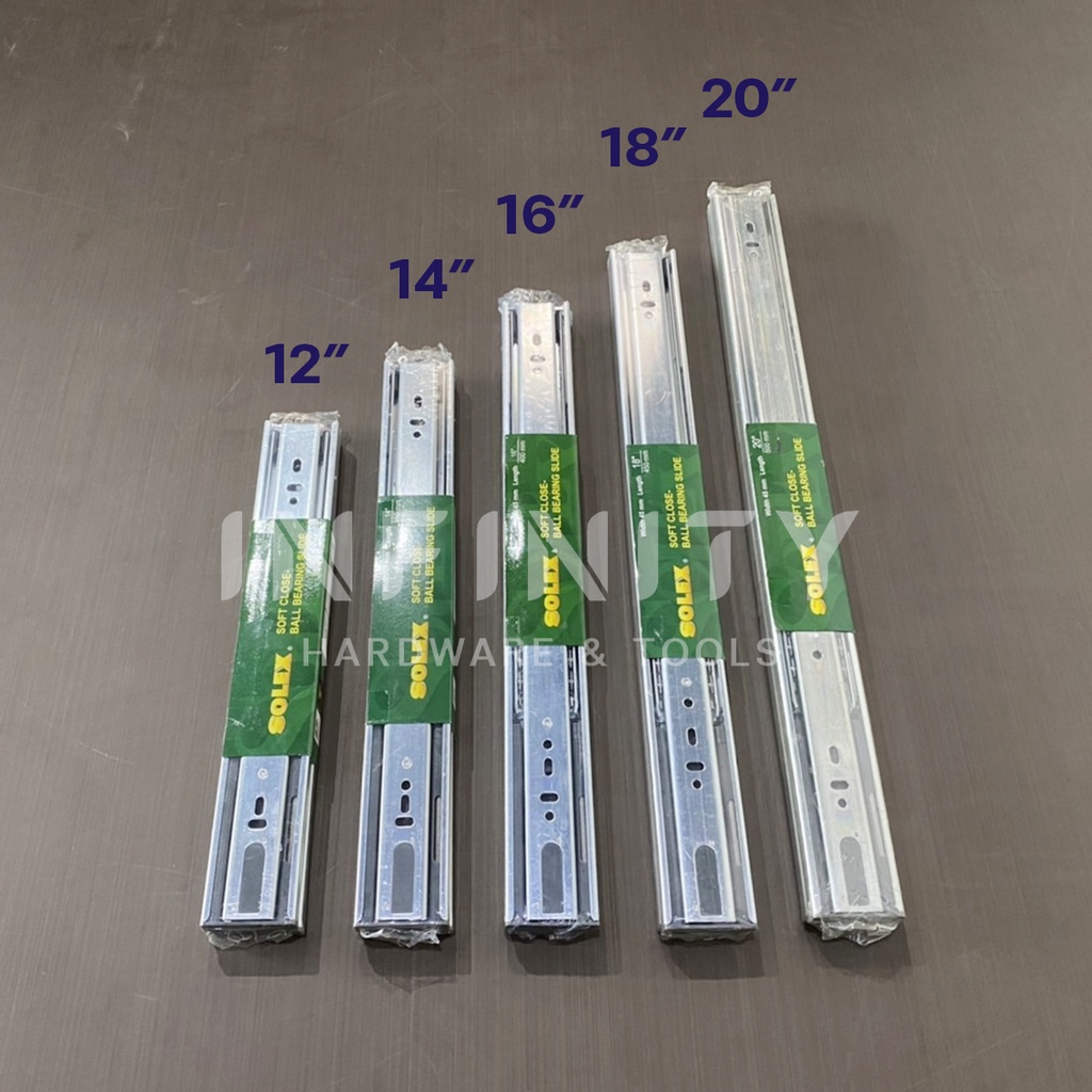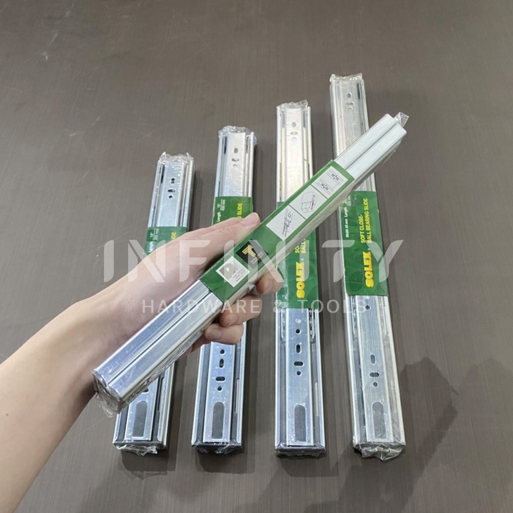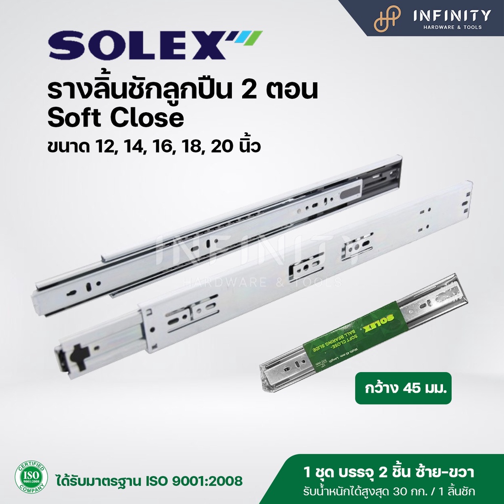 Solex รางลิ้นชักลูกปืน 2 ตอน Soft Close (เปิดปิดแบบนุ่มนวล) รับข้าง ขนาด 12-20 นิ้ว
