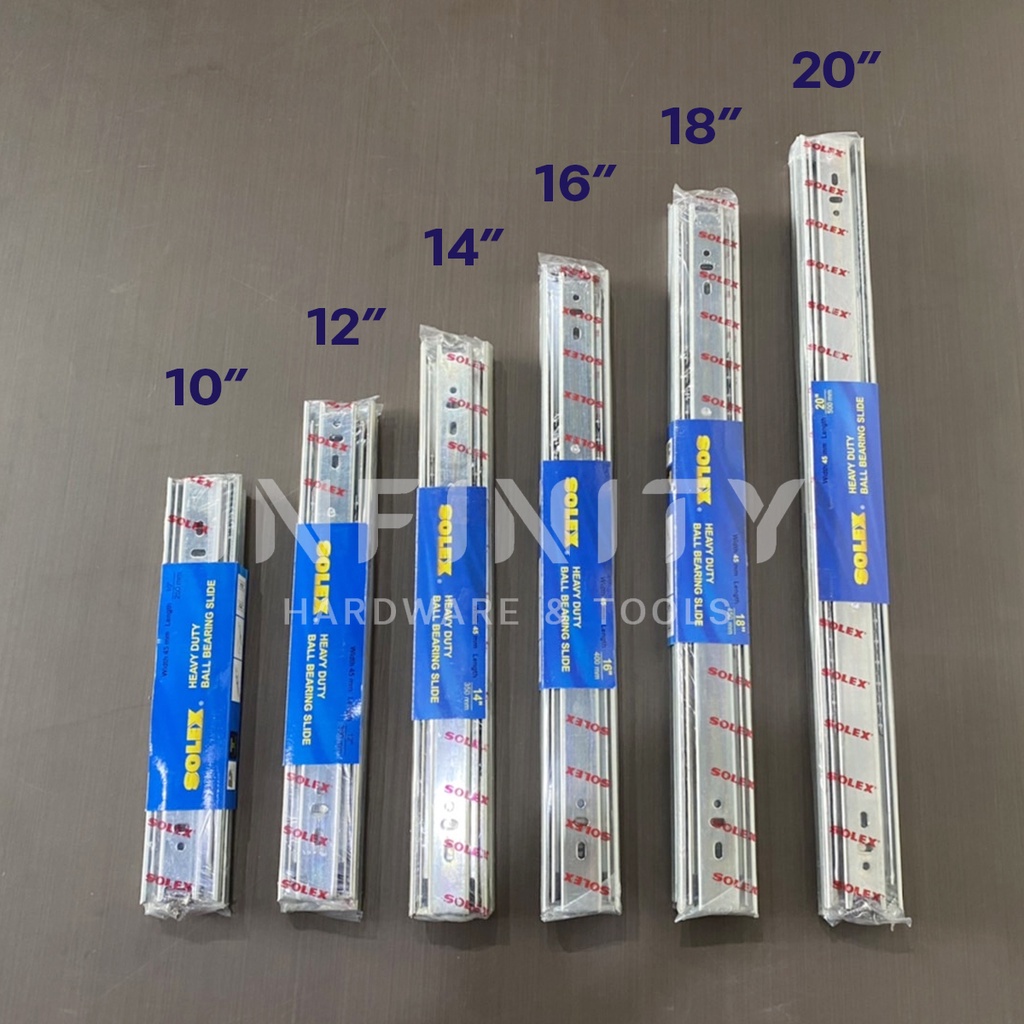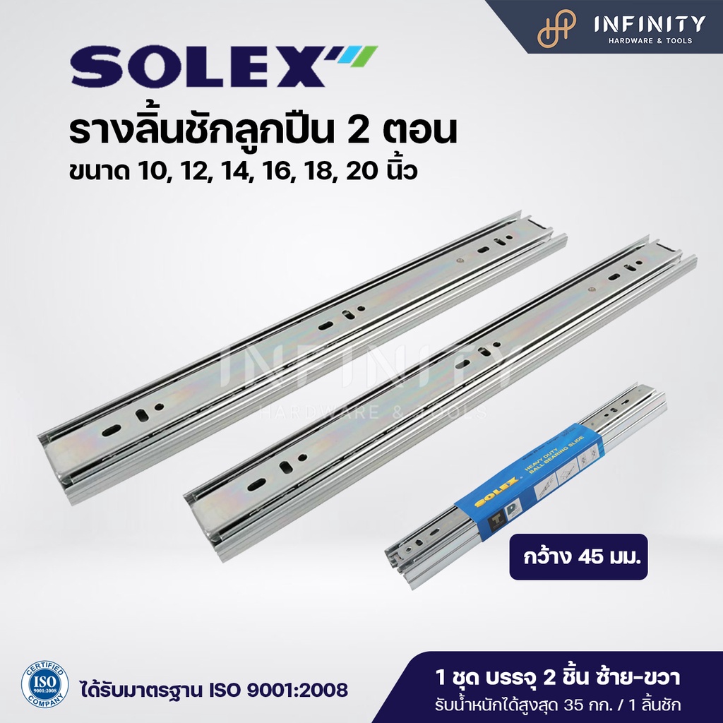 Solex รางลิ้นชักลูกปืน 2 ตอน (รับข้าง) ขนาด 10-20 นิ้ว