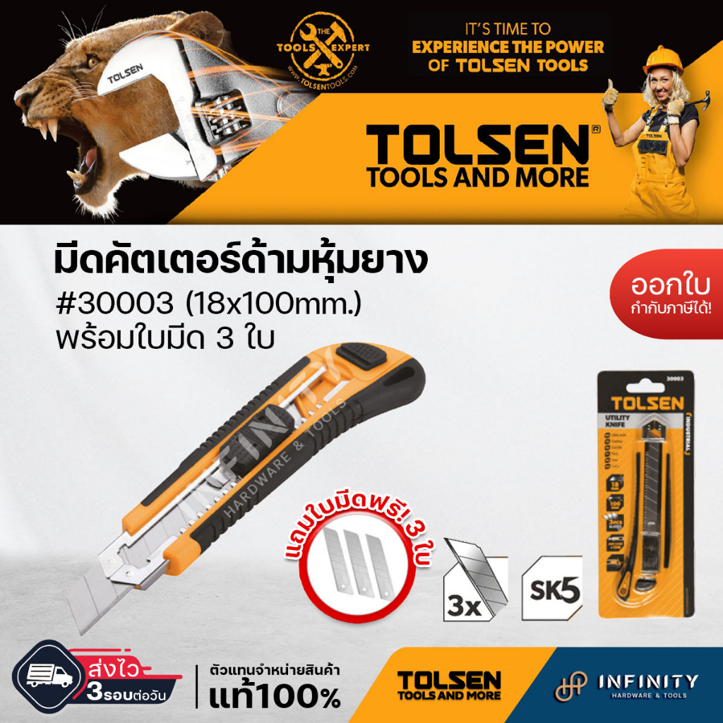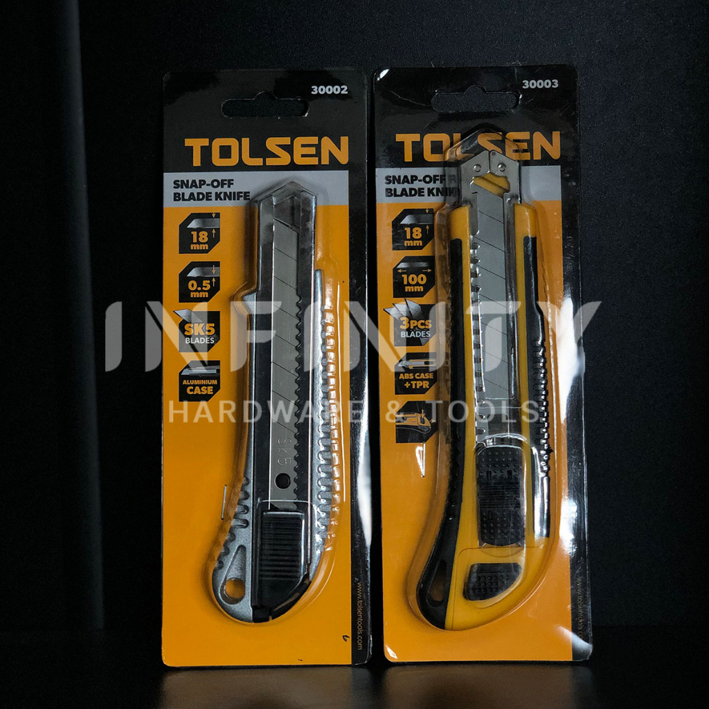 TOLSEN มีดคัตเตอร์ อลูมิเนียม (18x100mm.) รุ่น #30002และ มีดคัตเตอร์ ด้ามหุ้มยาง (18x100mm) #30003
