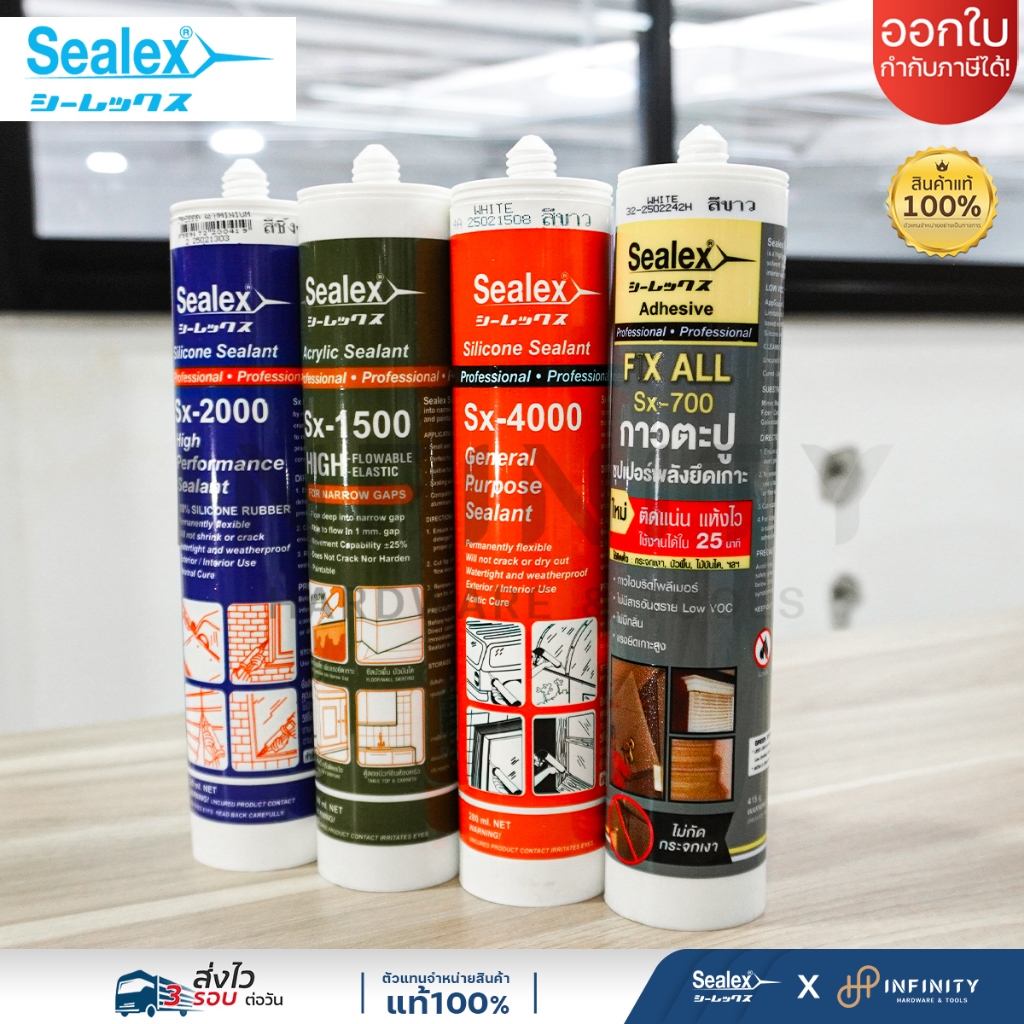 Sealex ซีลเลกซ์ อะคริลิกยาแนว Sx - 1500 แด๊ป อะคริลิคยาแนว คุณภาพสูง 12สี