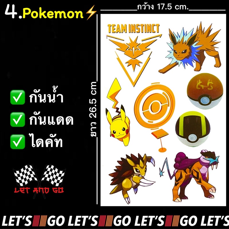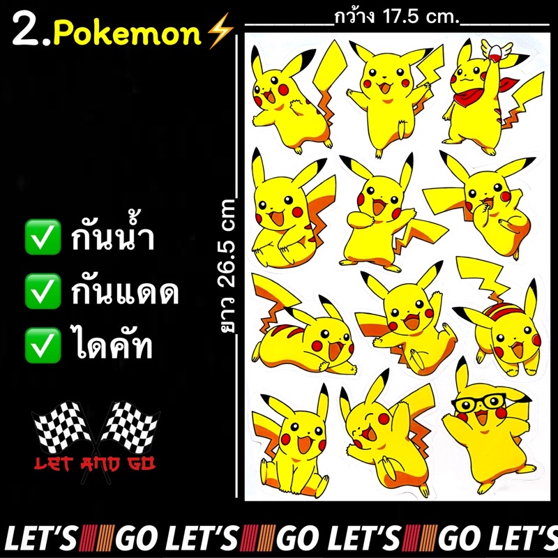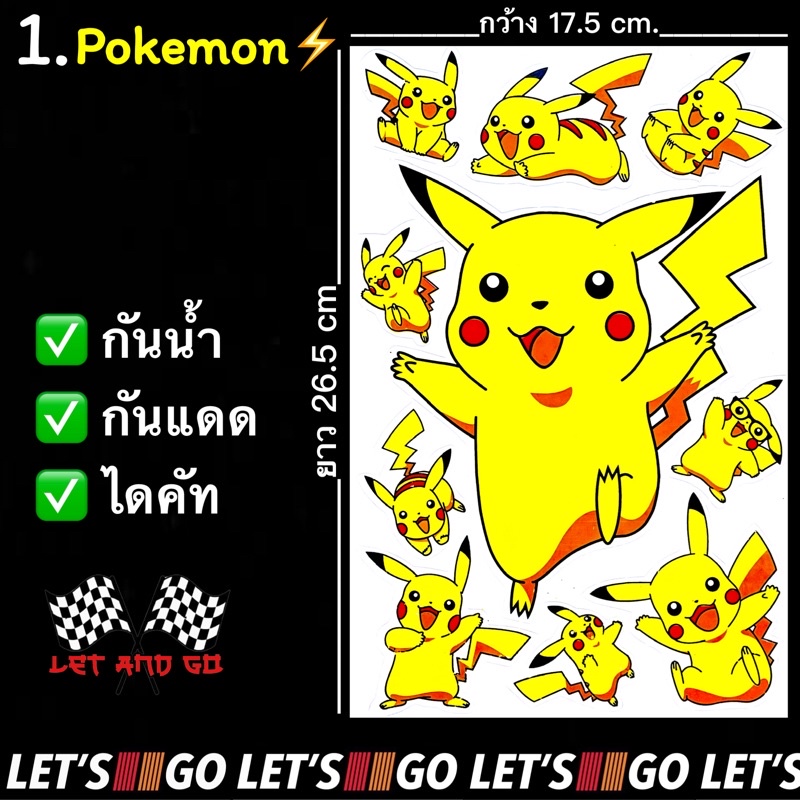 สติกเกอร์Pokemon 4ใบ100 ไดคัท กันน้ำ กันแดด ปิกาจู pokemongo โปเกม่อน โปเกม่อนโก