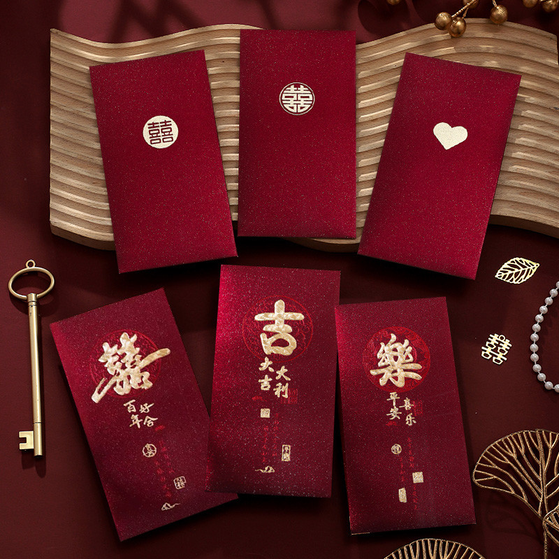 จีนซีตัวละครซองจดหมายสีแดงโชคดีพรถุงเงินอุปกรณ์จัดงานแต่งงาน