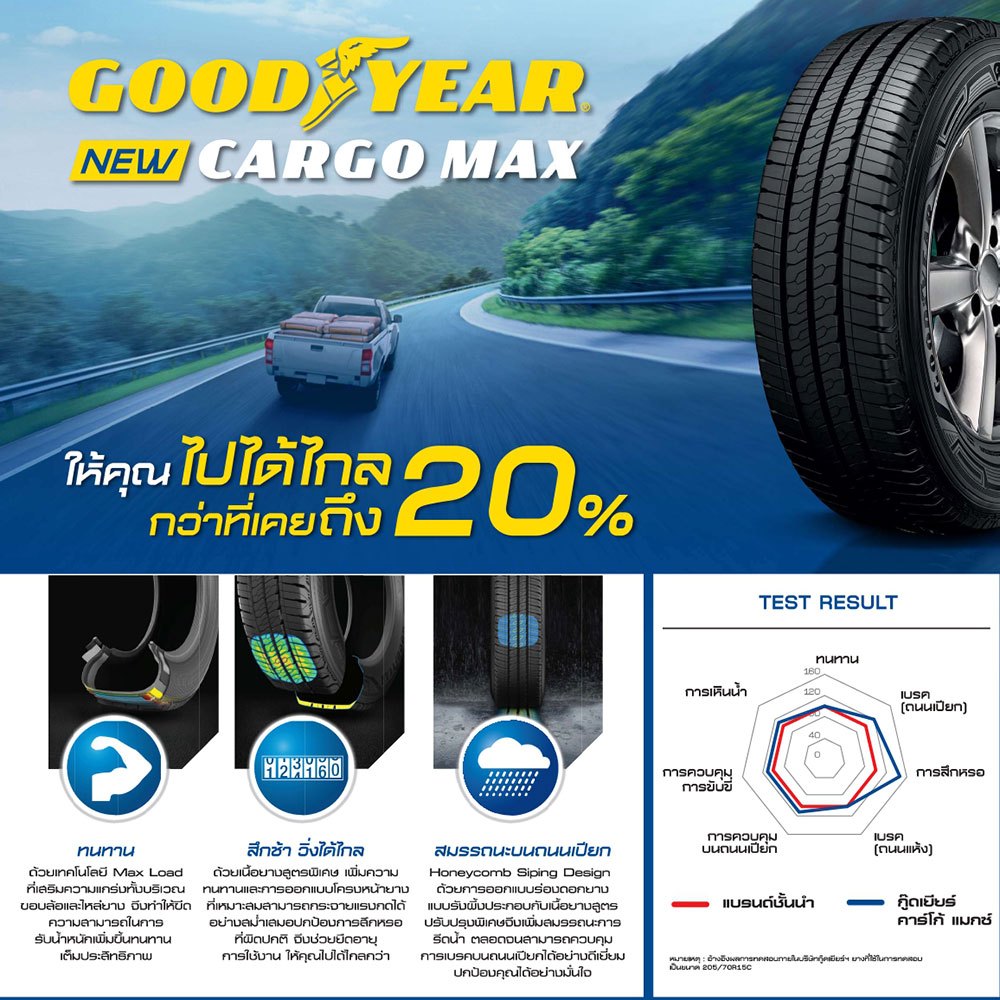 GOODYEAR ยางรถยนต์ ขอบ 15 ขนาด 205/70R15 รุ่น Cargo Max - 4 เส้น (ปี 2025)