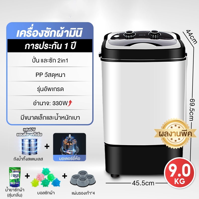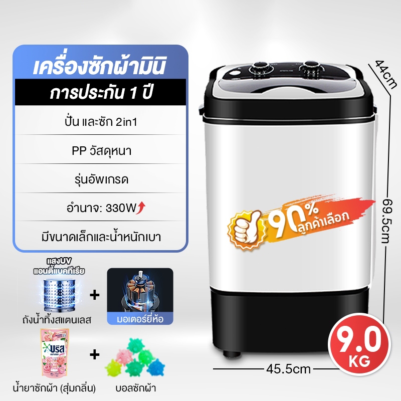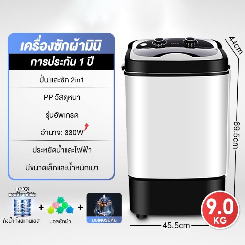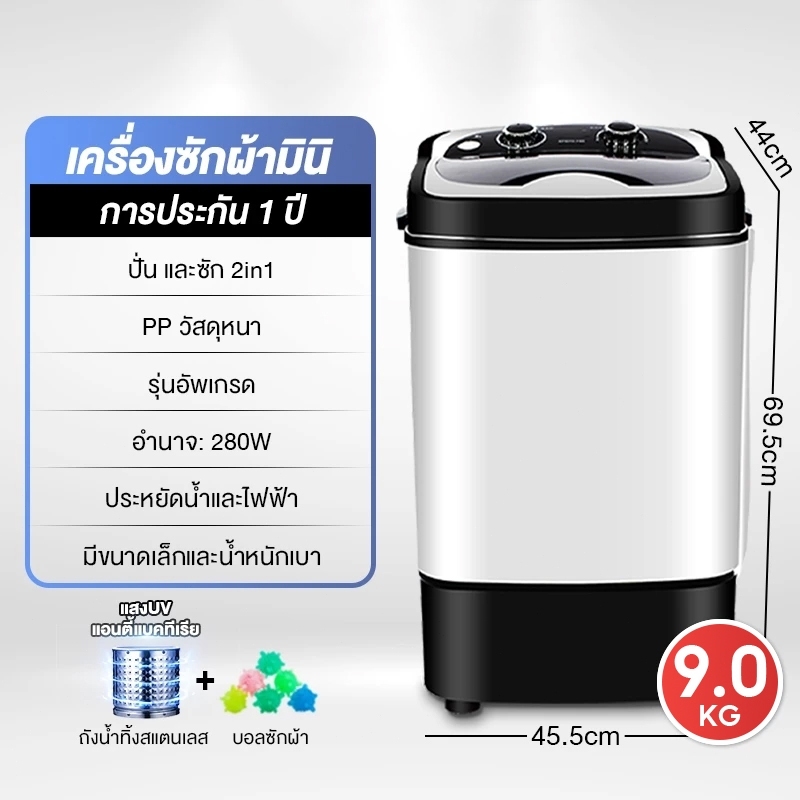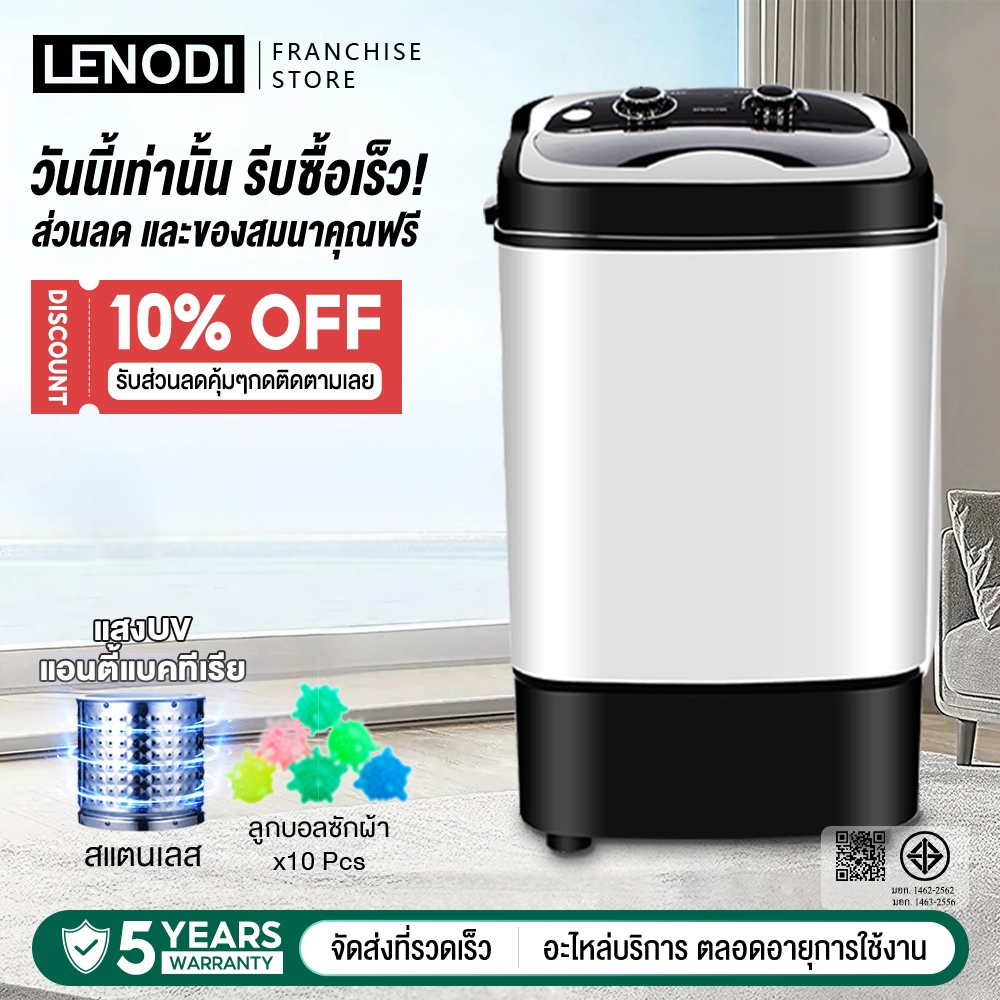 LENODI เครื่องซักผ้า เครื่องฆ่าเชื้อกึ่งอัตโนมัติขนาดเล็ก 8.5 KG แบบถังเดี่ยว สีขาว,สีดำ ง่ายต่อการใช้งาน