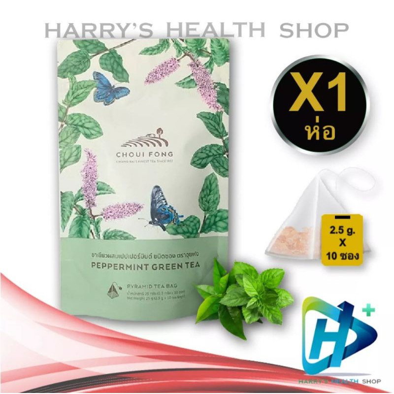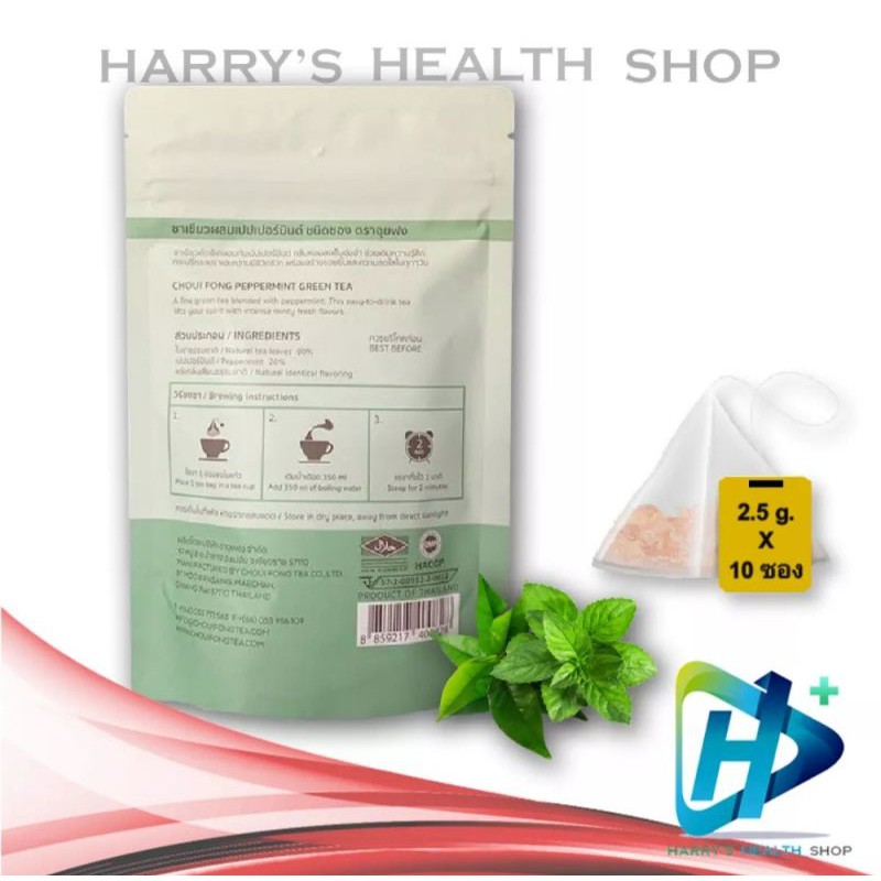 ฉุยฟง ชาเขียว ผสม เปปเปอร์มินท์ ชาสมุนไพร Choui FongPeppermint Green Tea 2.5 g. x 10 bags 1 pack EXPIRES SEPT 2025