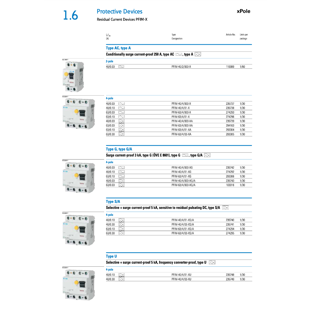 Eaton เบรกเกอร์กันดูด PFIM 2P (25A–63A) 30mA RCCB