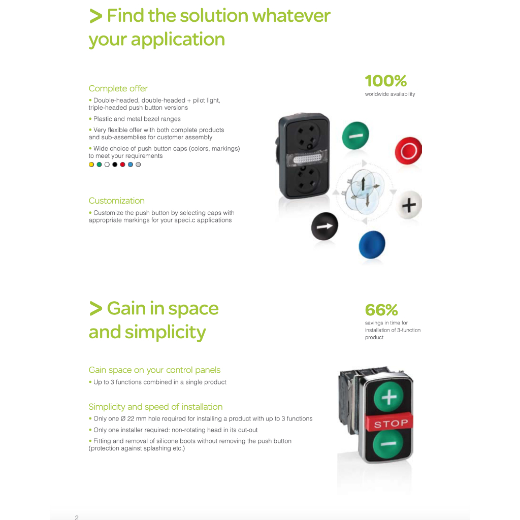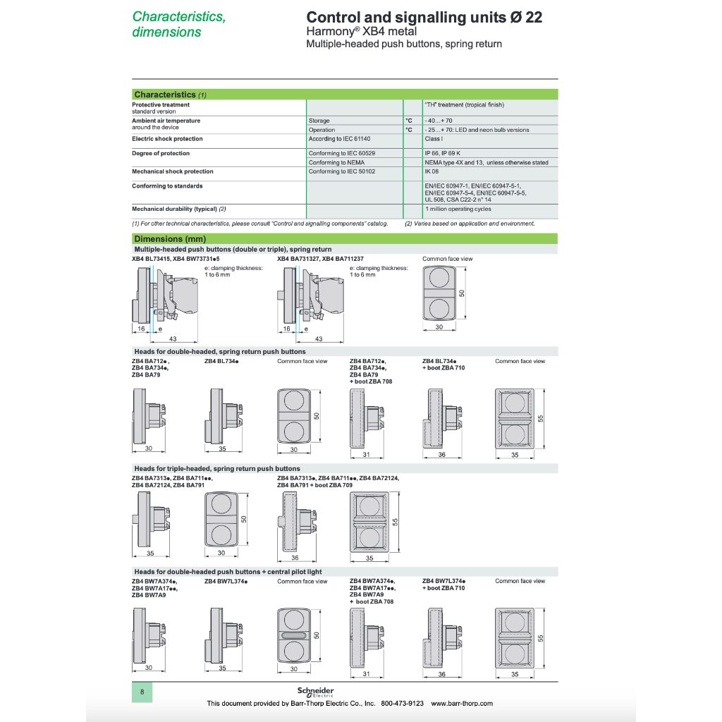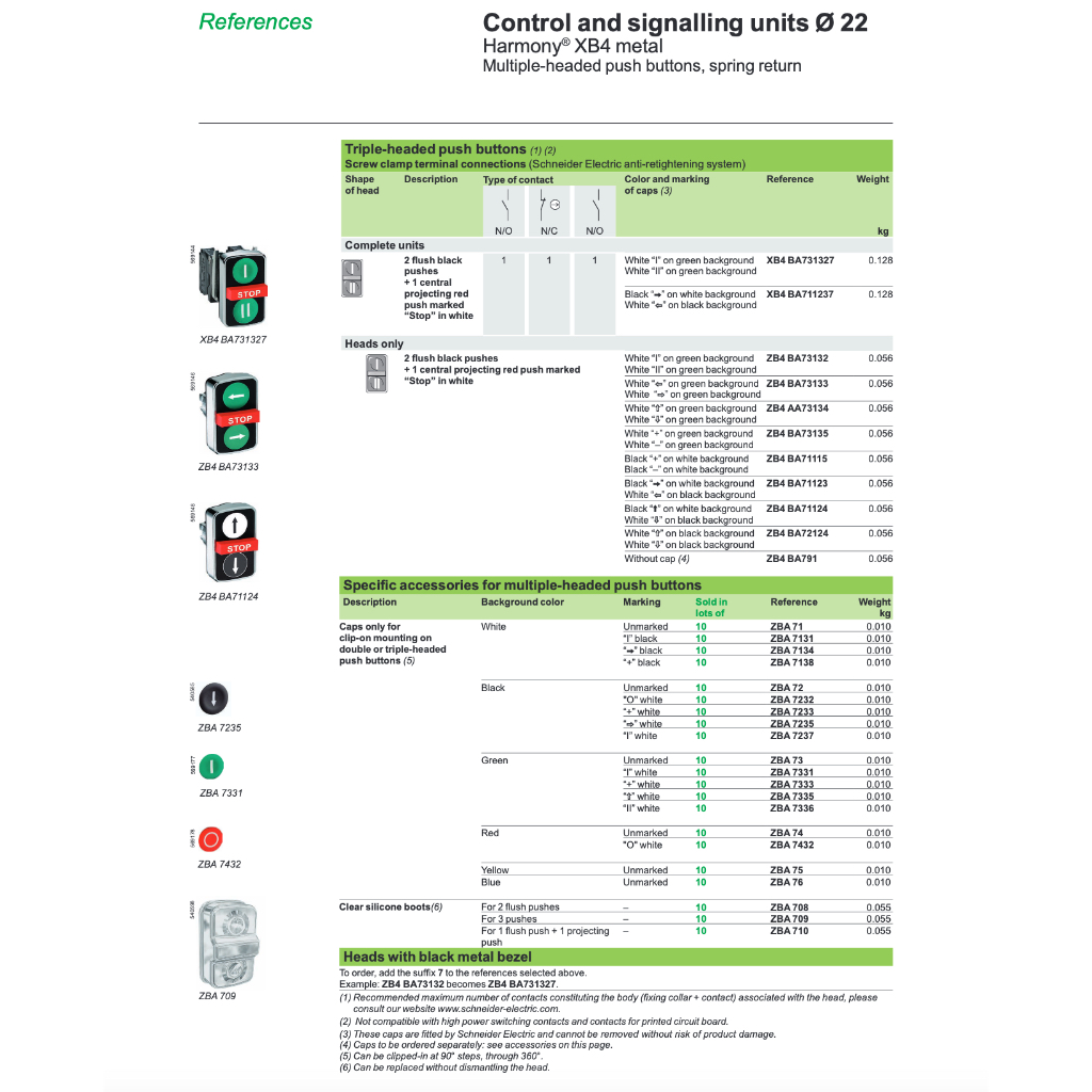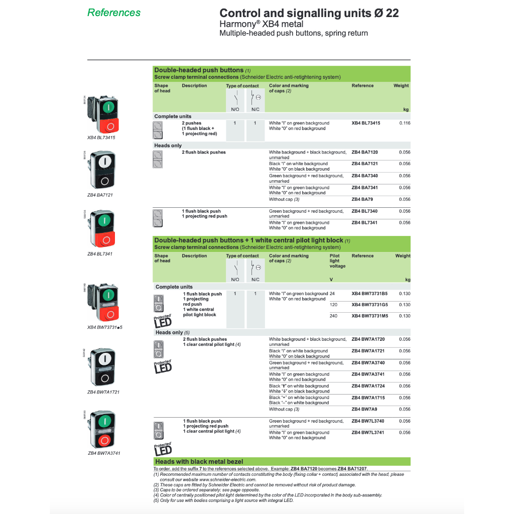 Schneider หัวกดปุ่มคู่ XB5AA71215P หัวกดปุ่มคู่ (2 หัวเรียบ กดเด้งกลับ), Multiple-head pushbuttons