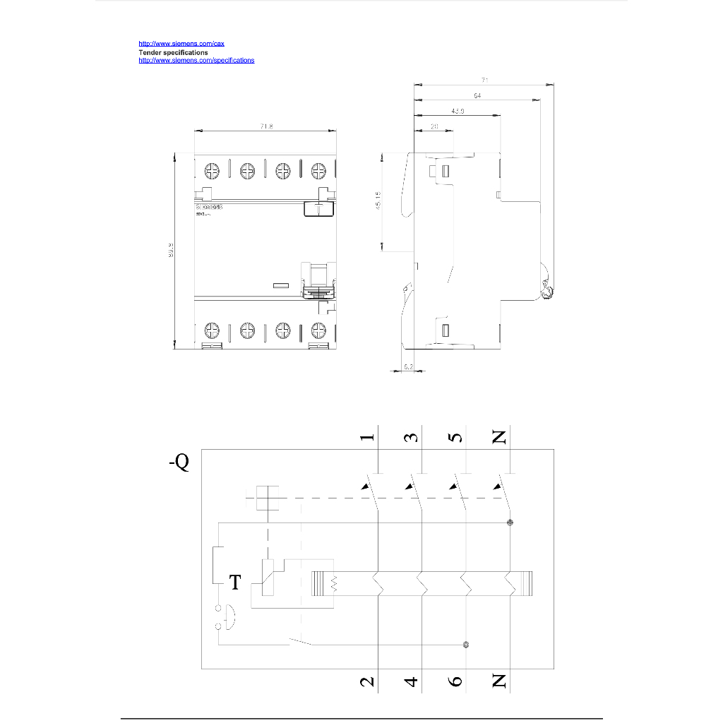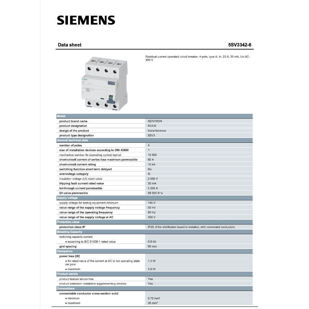 SIEMENS กันไฟดูด/ไฟรั่ว 5SV33 3P+N 25A - 40A 30mA Type A RCCB instantaneous