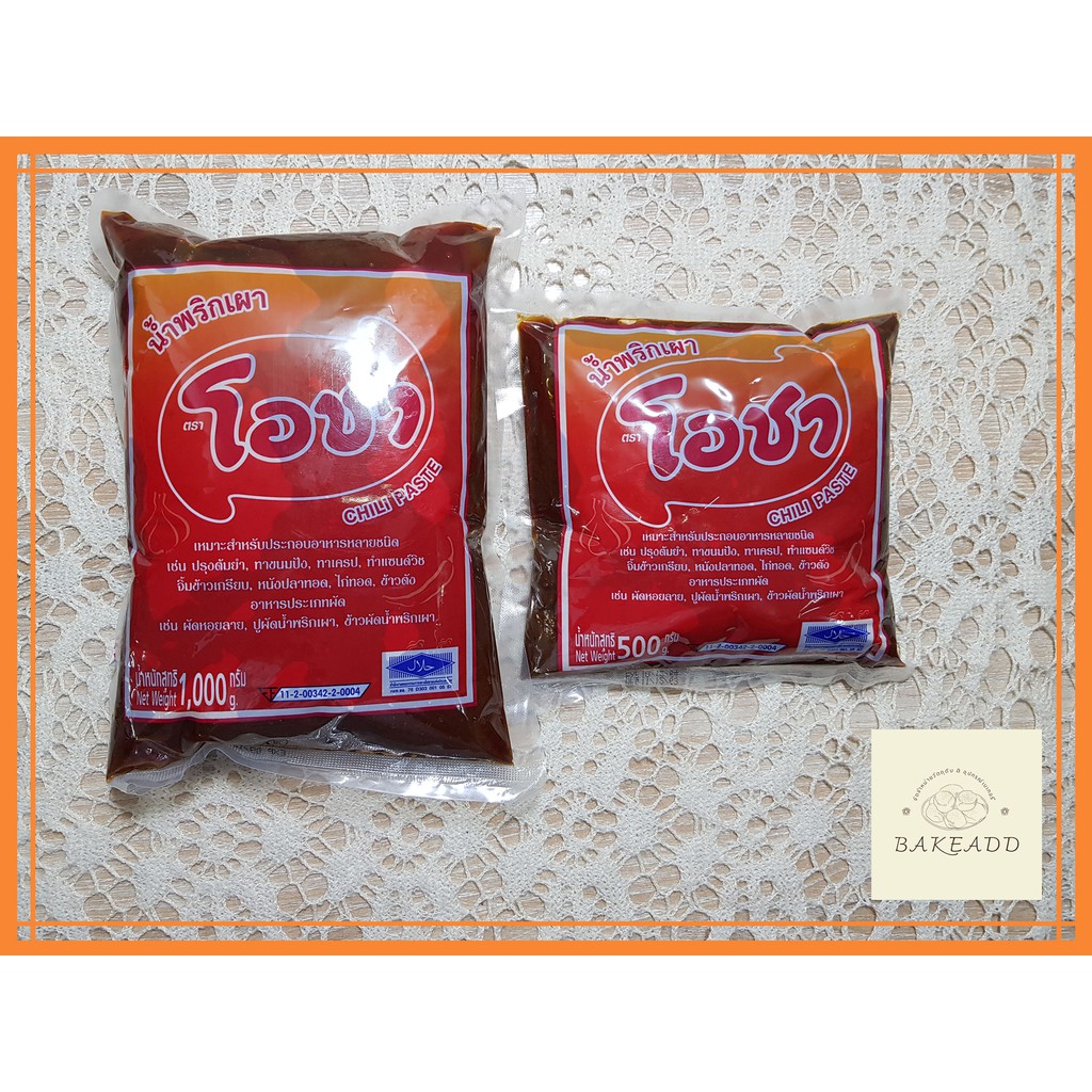 น้ำพริกเผา โอชา พริกเผาโอชา พริกเผาเบเกอรี่ (ทาขนมปัง ใส่ใส้ขนม ทำเครป แซนวิช) ขนาด 500 และ 1000 กรัม อุปกรณ์ เบเกอร์รี่