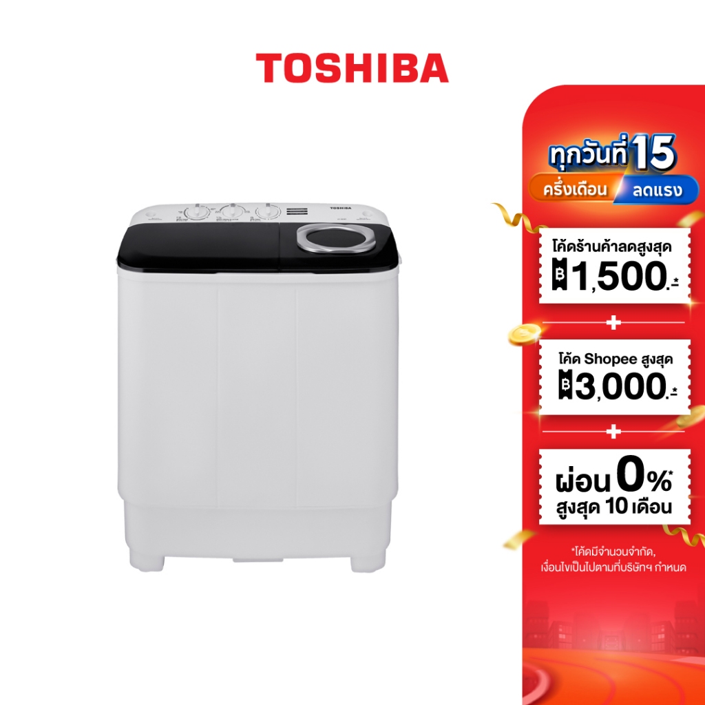 TOSHIBA เครื่องซักผ้า 2 ถัง ความจุ 7.5 กิโลกรัม รุ่น VH-H85MT (สีขาว)