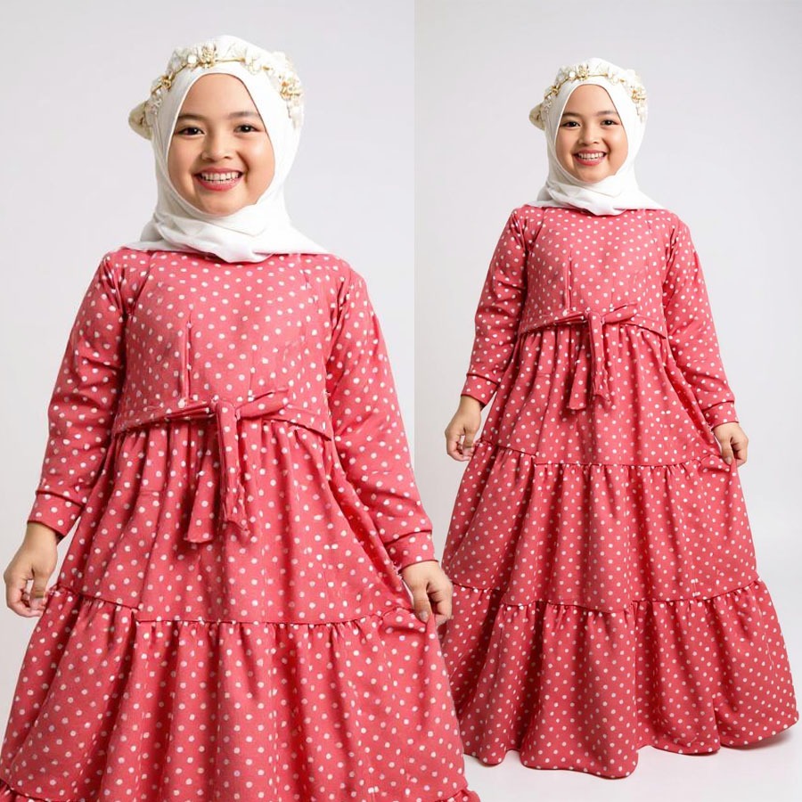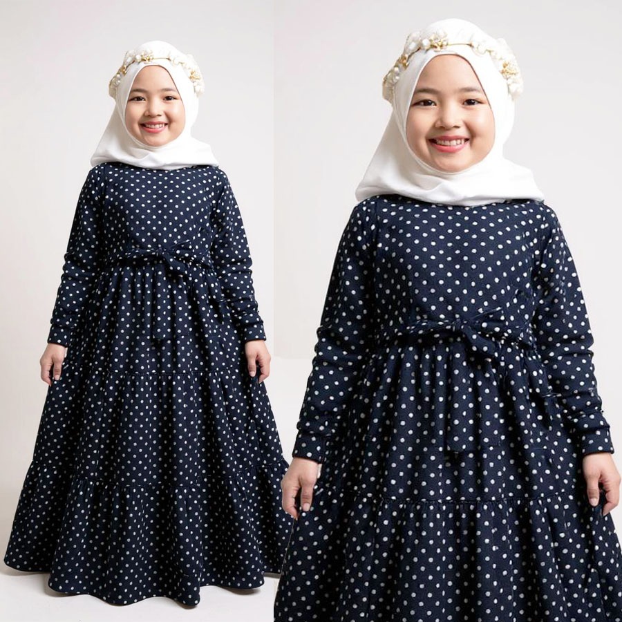 Polka Dot Onde 3 ชั้นเด็กผู้หญิง Maxi Dress Carlina แฟชั่น