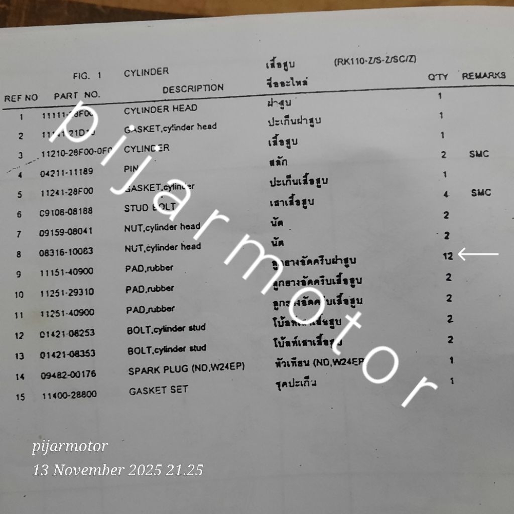 (ราคาหน่วย) แผ่นยางยาง Fin ฝาสูบ Kop Suzuki RGR 150 RK Cool