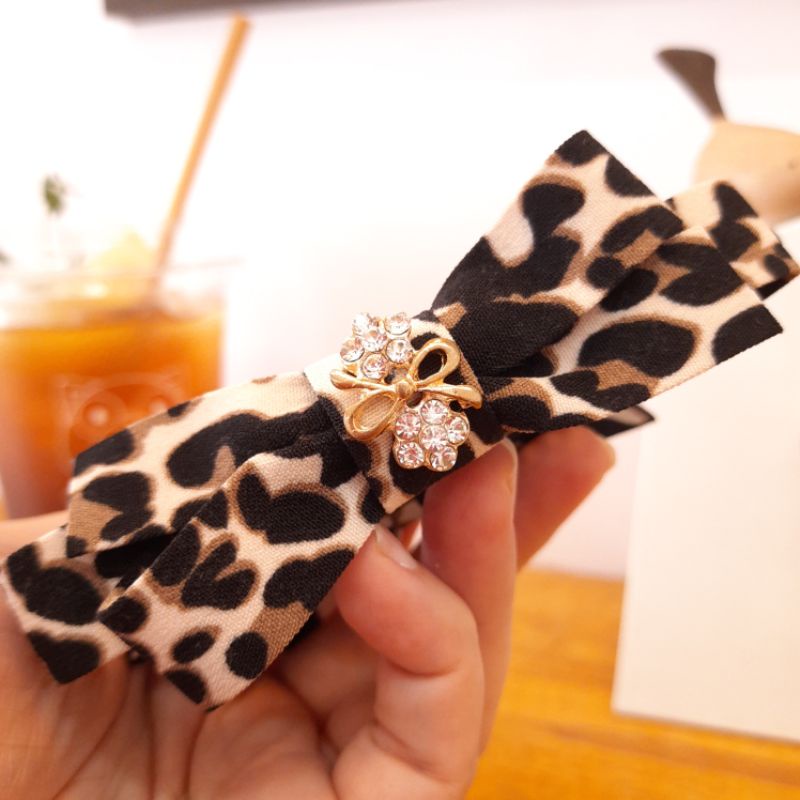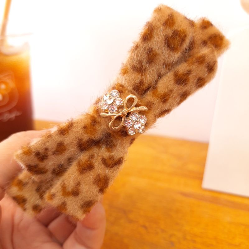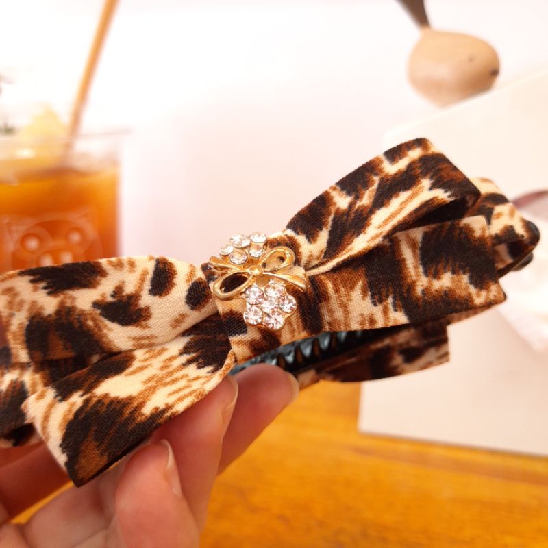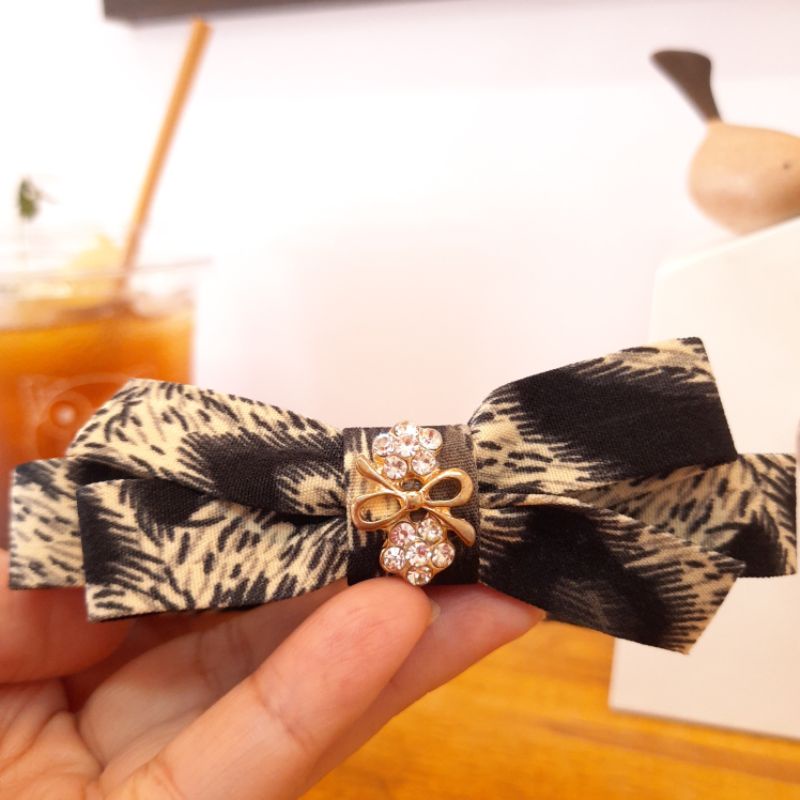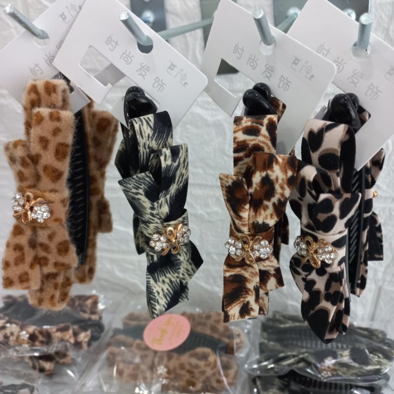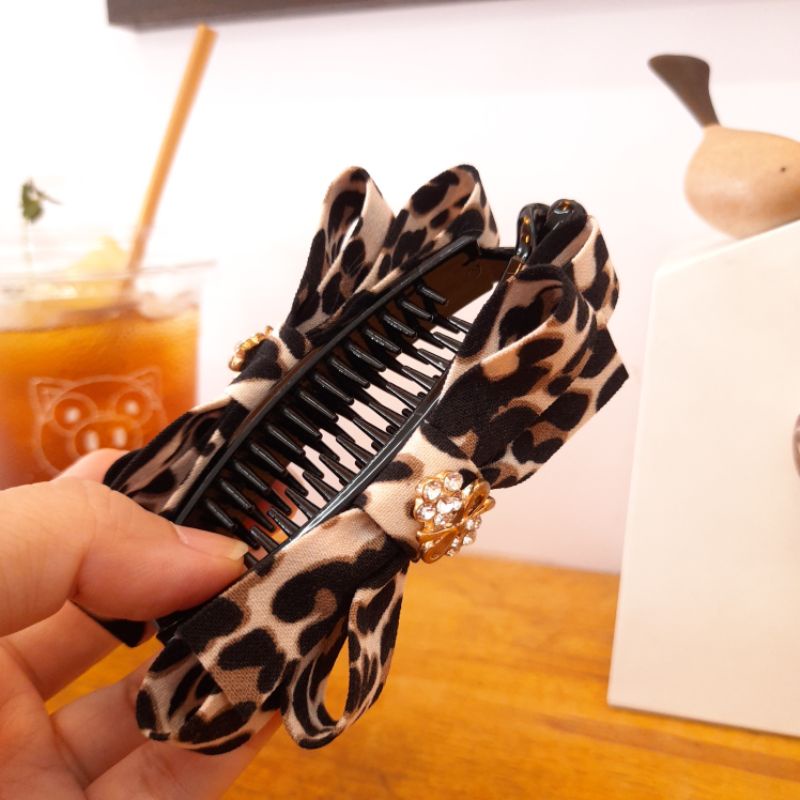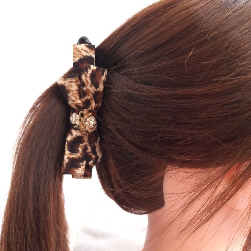 [B010] jappleshop กิ๊บกล้วยหนีบผมประดับโบว์ผ้าลายเสือ 4 ลาย โบว์ติดผมลายเสือ กิ๊บรวบผม