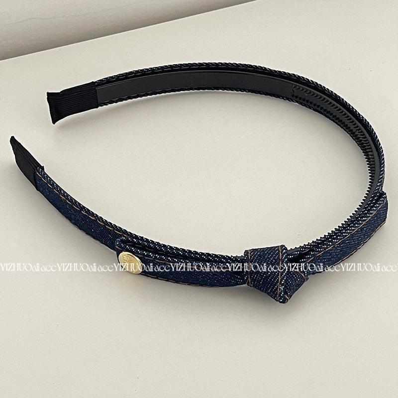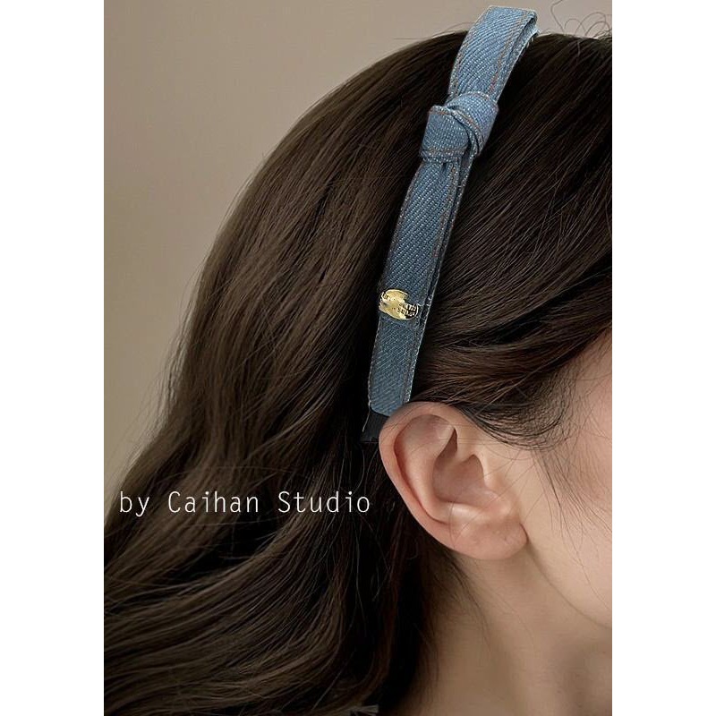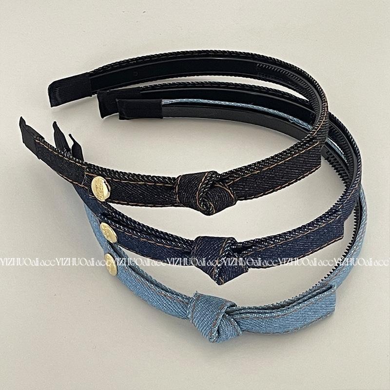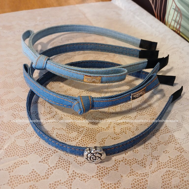[H016] ที่คาดผมผ้ายีนส์ผูกโบว์ กว้าง 16 มิล และ 10 มิล แบบเรียบง่ายน่ารัก ใช้ได้ทุกวัย