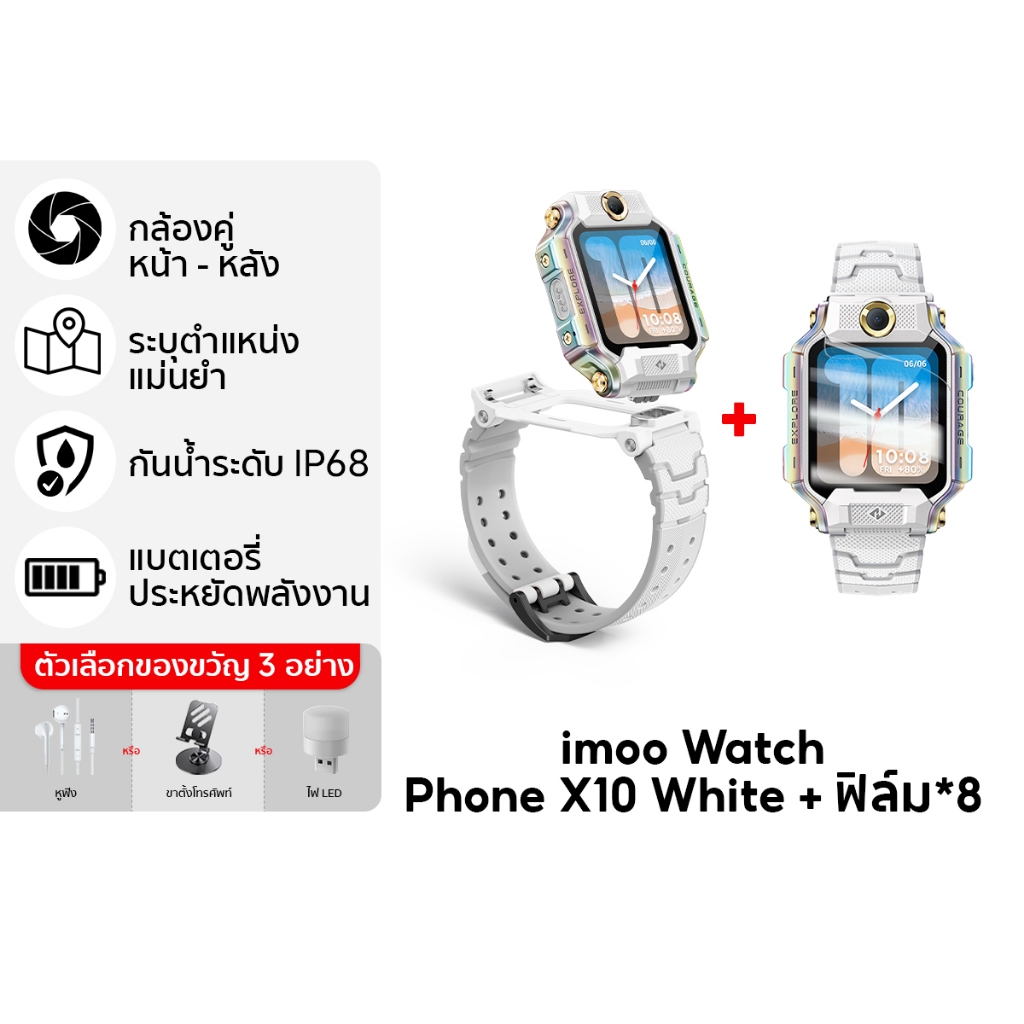imoo Watch Phone X10 สมาร์ทวอทช์เด็ก | วิดีโอคอล | กล้องคู่หน้า-หลัง | ระบุตำแหน่งแม่นยำ | กันน้ำระดับ IP68
