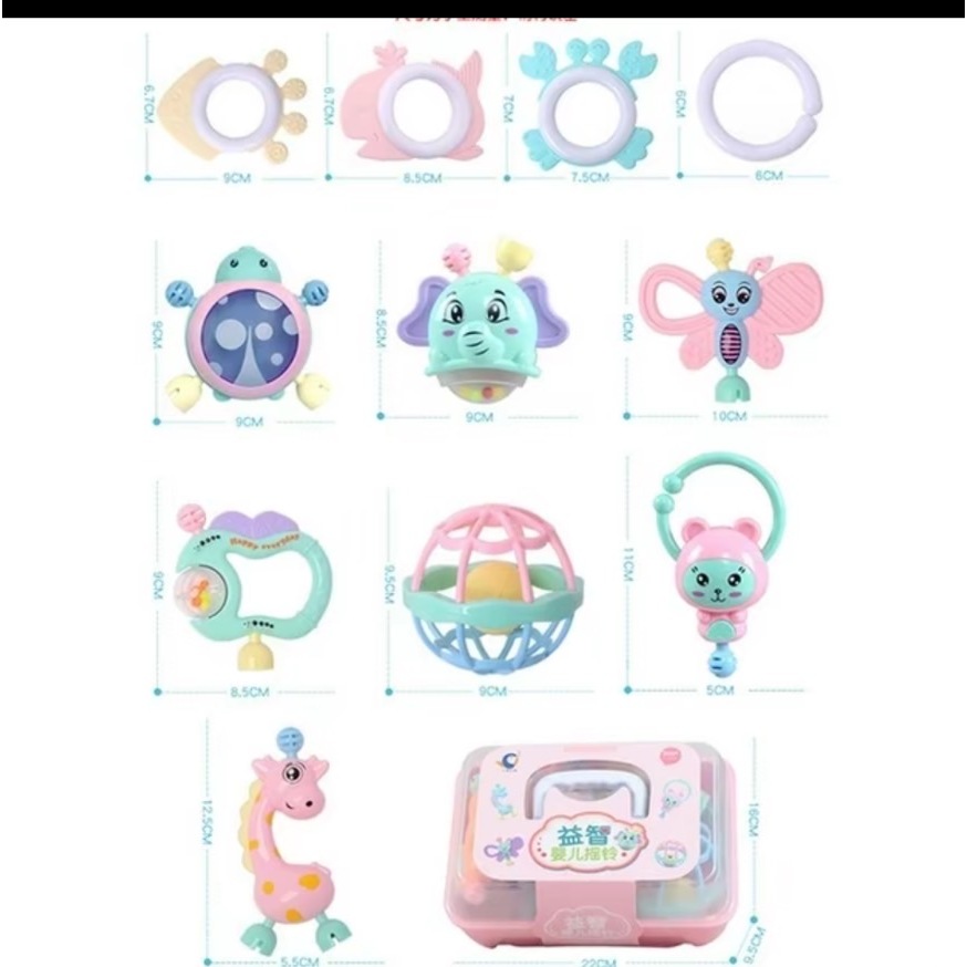 🎈พร้อมส่ง🎈ของเล่นเขย่ามือ ของเล่นเสริมพัฒนาการเด็กๆ ชุดเขย่ามือเด็ก ยางกัดเด็ก ชุดเขย่ามือพร้อมยางกัด(11ชิ้น)