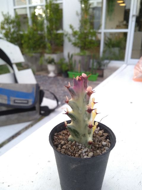 ยูโฟเบียไวท์โกส&คริสตาต้า Euphorbia lactea variegata White Ghost & cristata ซื้อ2กระถางขึ้นไปสุ่มของแถม
