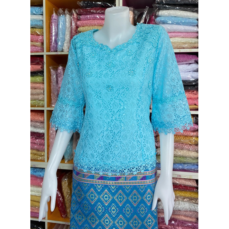 เสื้อลูกไม้ราเชลแขนสามส่วนซิปหลัง