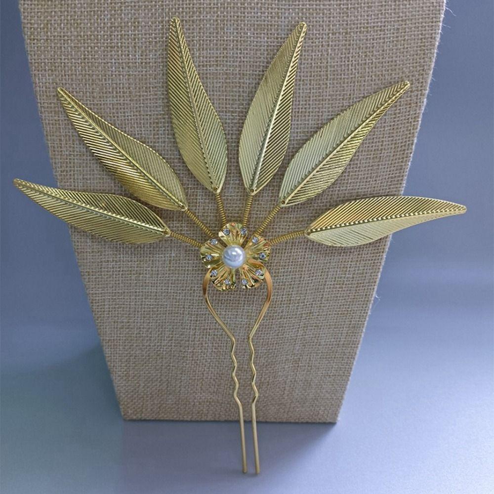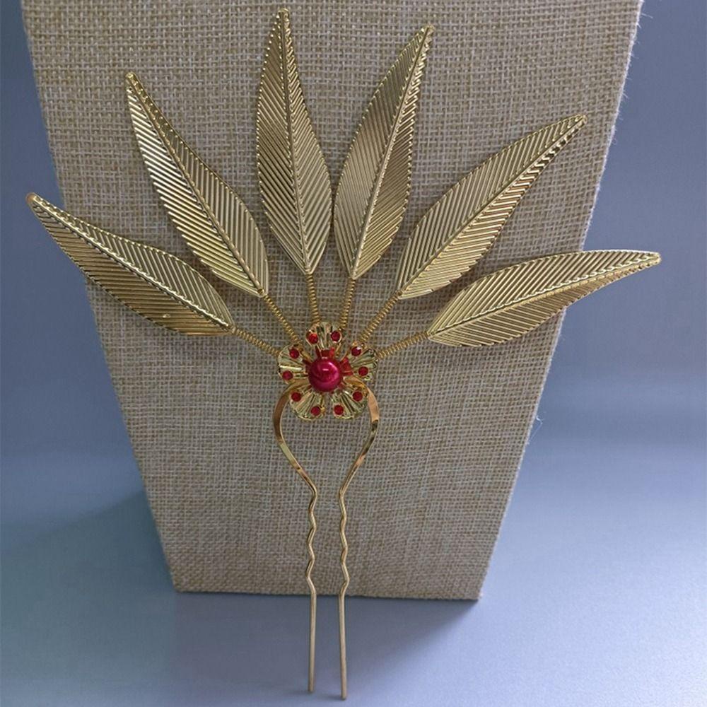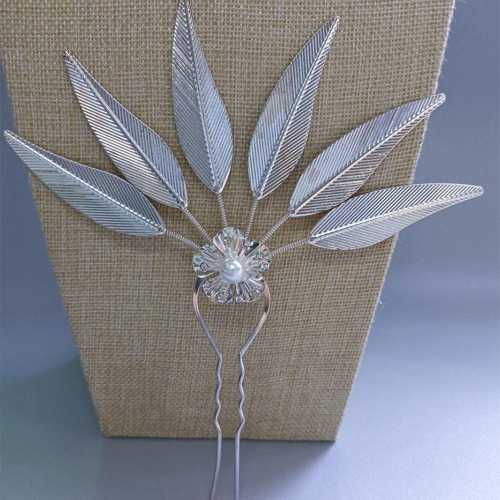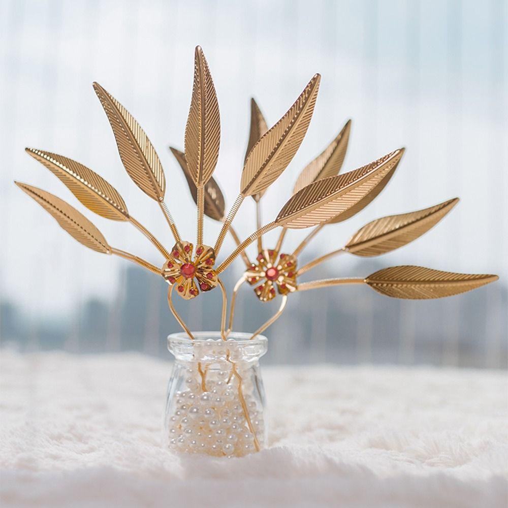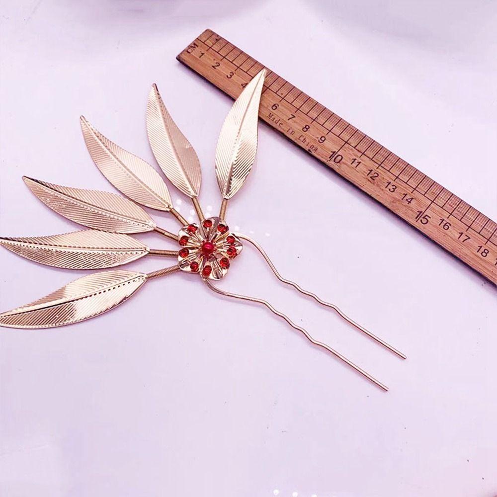 BACK2LIFEK ไทย Headdress ผู้หญิง Retro โบราณ Hanfu Headwear Leaf ชนกลุ่มน้อย เครื่องประดับผม ทรงผม U รูปร่าง Hairpin