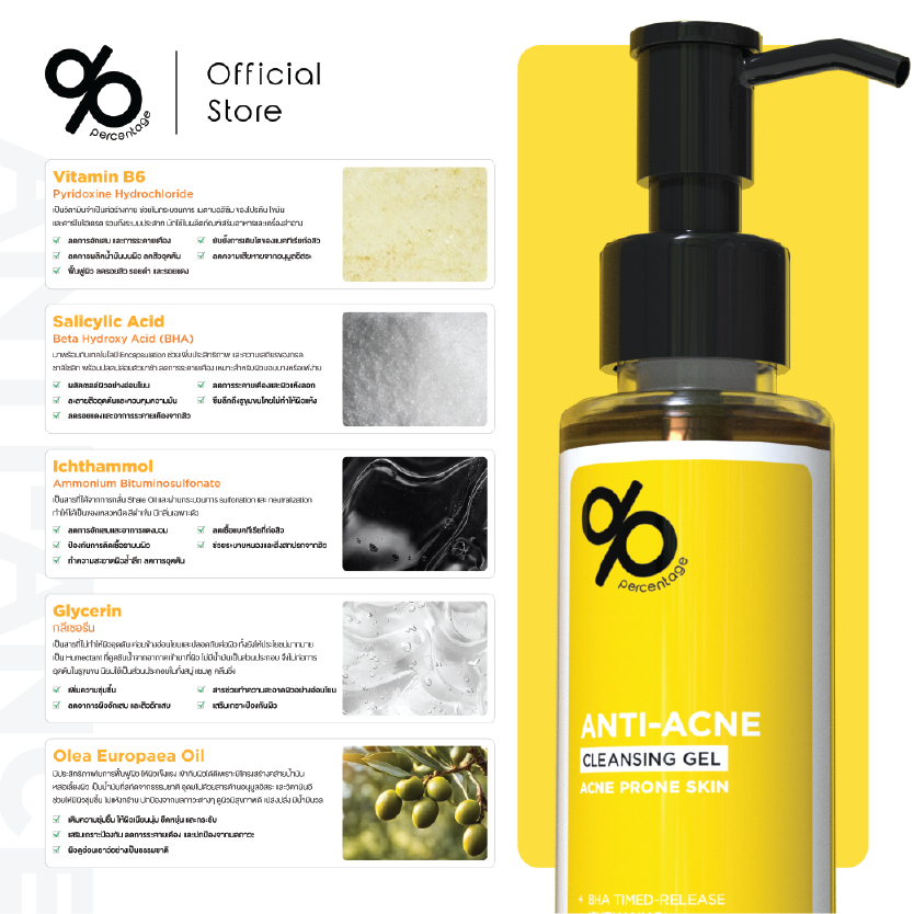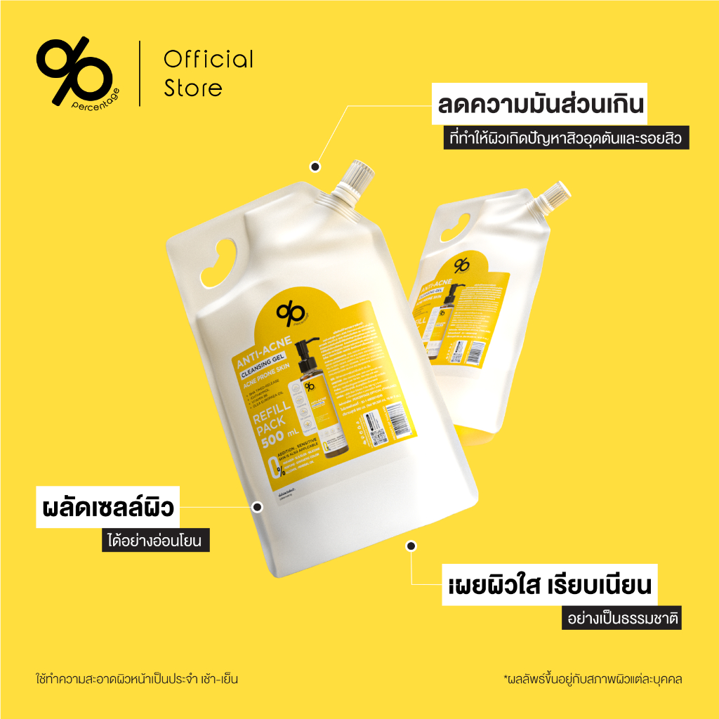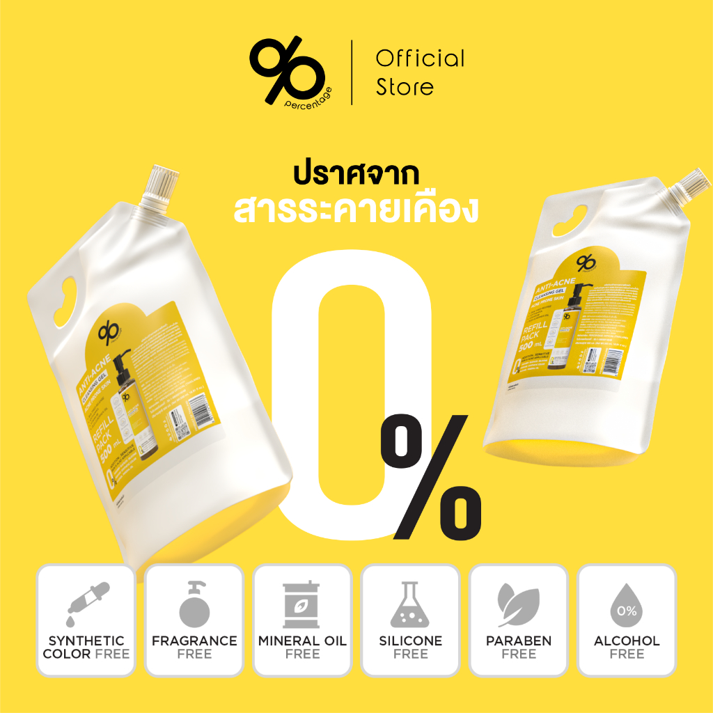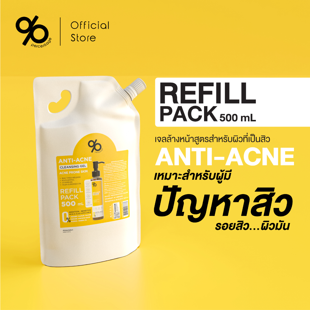 (Refill 500 mL) % Percentage Anti-acne Cleansing Gel เจลล้างหน้า สำหรับคนเป็นสิว ผิวมัน แพ้ง่าย