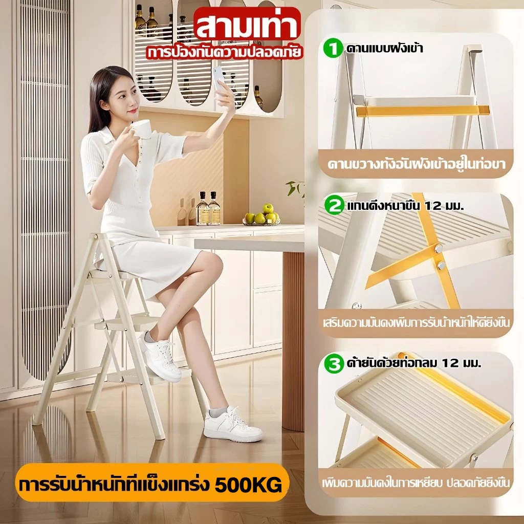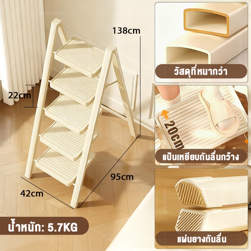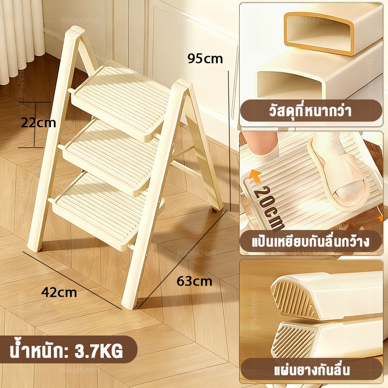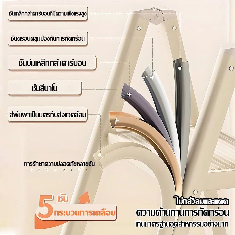 บันได บันไดพับได้ 3/4/5 แป้นเหยียบใหญ ่ขึ้น ชั้น รับน้ำหนักได้ 500kg บันไดเหล็กคาร์บอนหนา ขั้นกันลื่น กันน้ำ