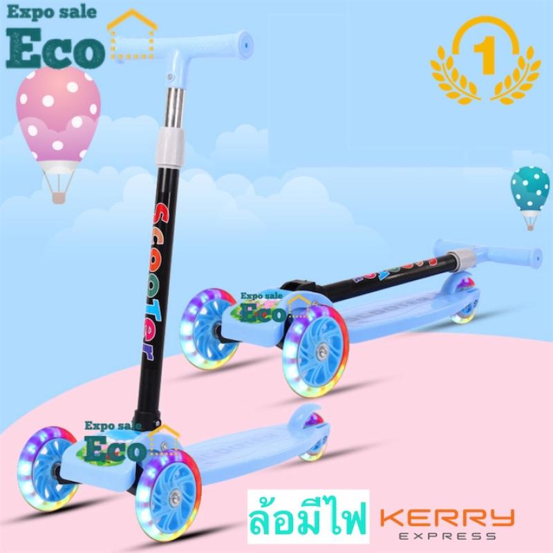 Eco Kids Scooters เด็กสกู๊ตเตอร์เบาเด็กสามล้อจักรยานพับ Slider แฟลช 3 รอบของเล่นกลางแจ้ง 2-8 ปีจักรยาน