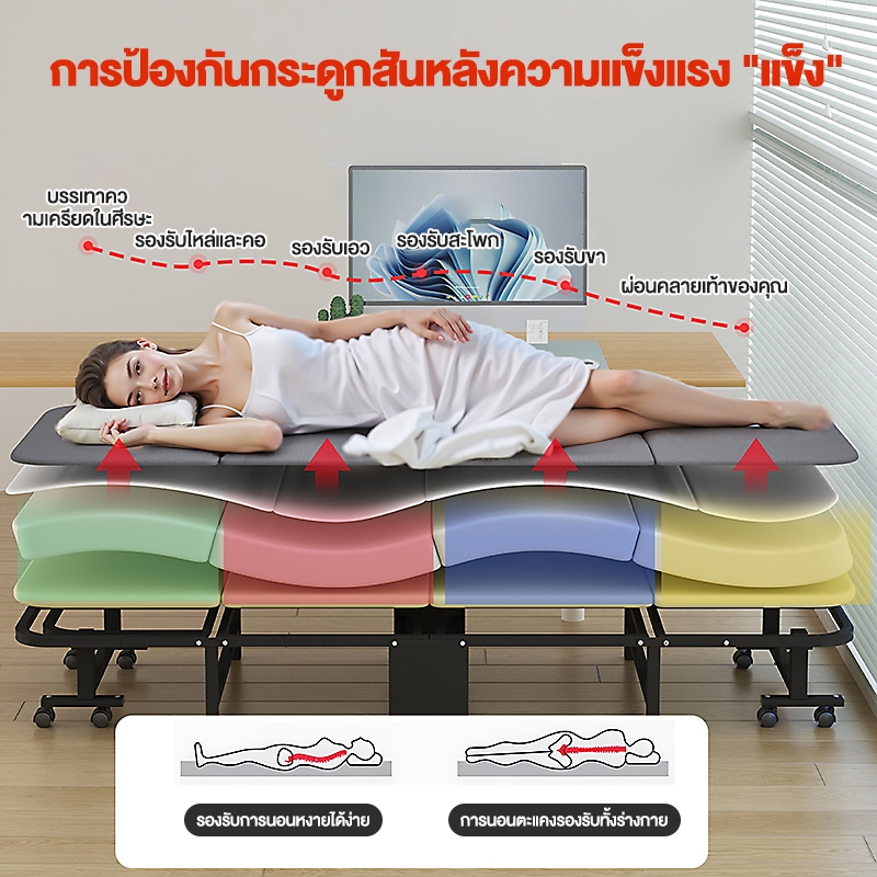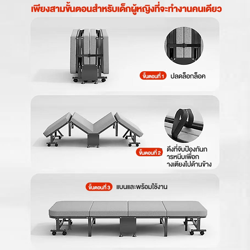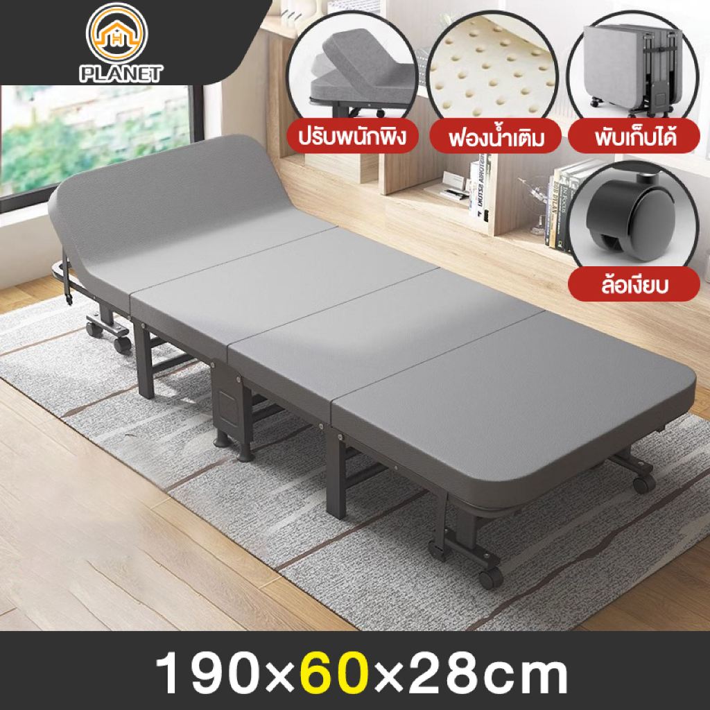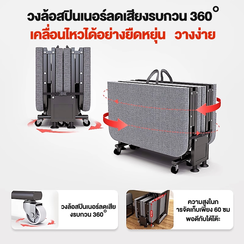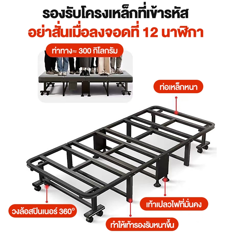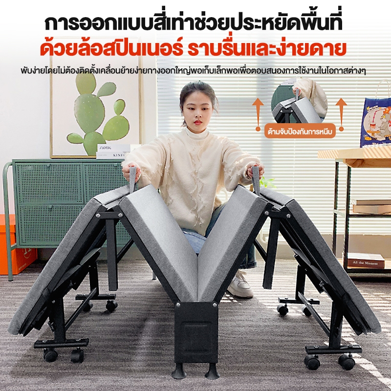 HM เตียงพับ folding bed เตียงสี่พับ กว้าง 60/70/80 ซม เตียงนอนพับได้ เตียงนอน 5 ฟุต 2คน เตียงพับได้