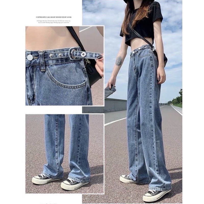 Smart 🔥ยีนส์ทรงกระบอกลิซ่า ด้านข้างปรับกระดุมได้ ทรงสวย สุดฮิตวัยรุ่นมากๆ มีสองสี </ Girls jeans /> 2099