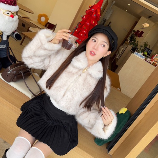 (พร้อมส่ง) แจ็คเก็ตเฟอร์ แบบสั้น ขนเฟอร์สวยมากก แมทช์ชุดง่าย มีซับในอย่างดี