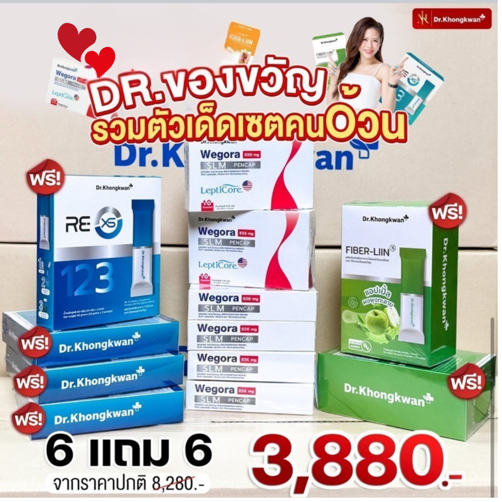 รวมตัวเด็ด ดร.ของขวัญ Dr.Khongkwan 6+6 รวม 12 กล่อง RE XS + Fiber Liin + Wegora