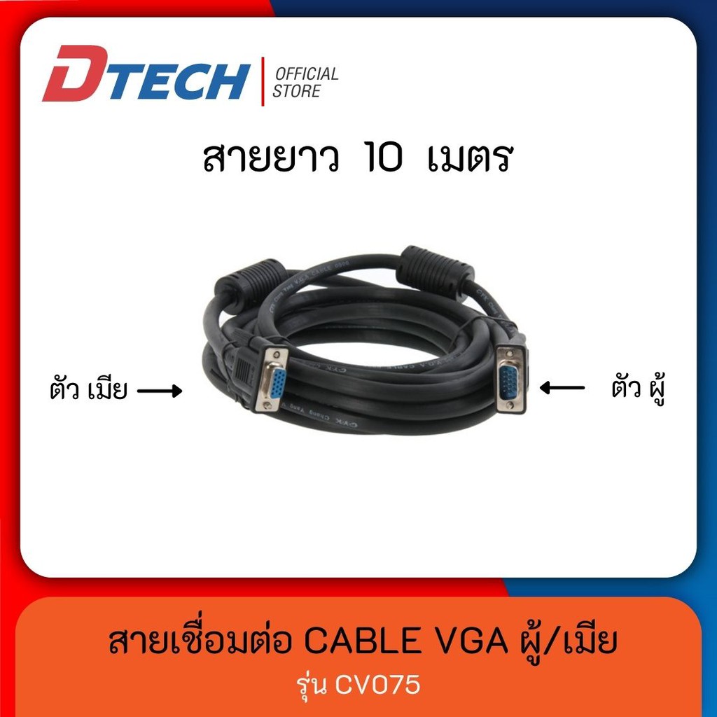 [Dtech_official] Dtech สาย VGA สายยาว 10 เมตร M/F หัวต่อ ผู้/เมีย รุ่น CV075 มาตรฐาน 15 พิน ทนทาน ใช้งานยาวนาน