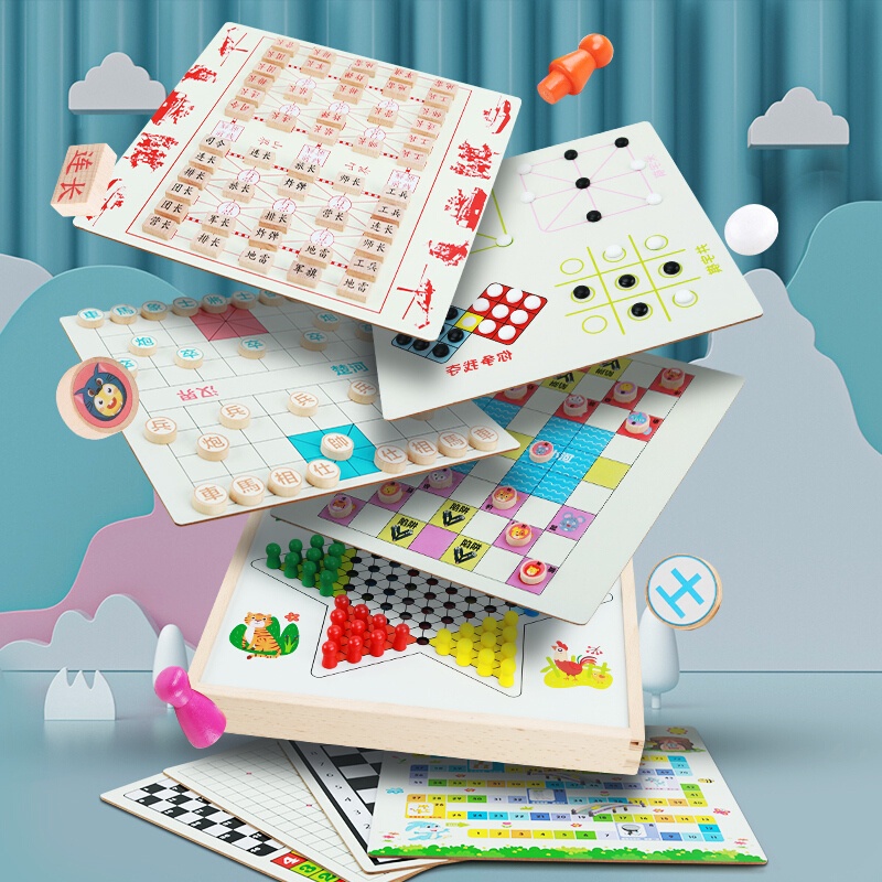 แบ็คแกมมอนหมากฮอสบินเกมของขวัญเด็กปริศนาชายและหญิงมัลติฟังก์ชั่ โต๊ะหมากรุกยี่สิบเกมโรงเรียนประถมศึกษา ของเล่นสำหรับเด็ก