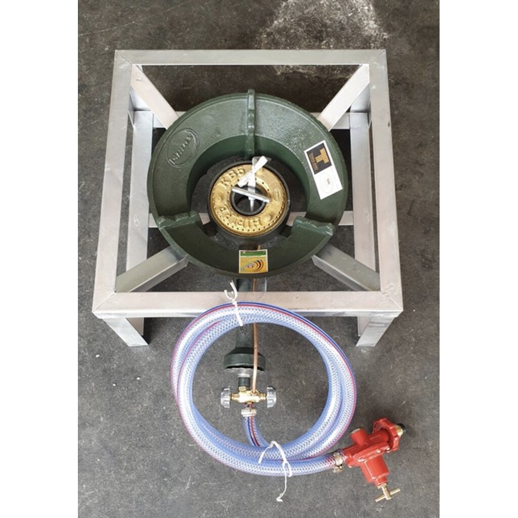 ชุดหัวเตาแม่ค้า หัวเร่ง KB5 ยี่ห้อ Gmax ขาเหลี่ยมเตี้ย ขนาด 40x40x22 ซม. พร้อมหัวปรับเร่ง SCG รุ่น R924 สายอย่างหนา 2 ม.