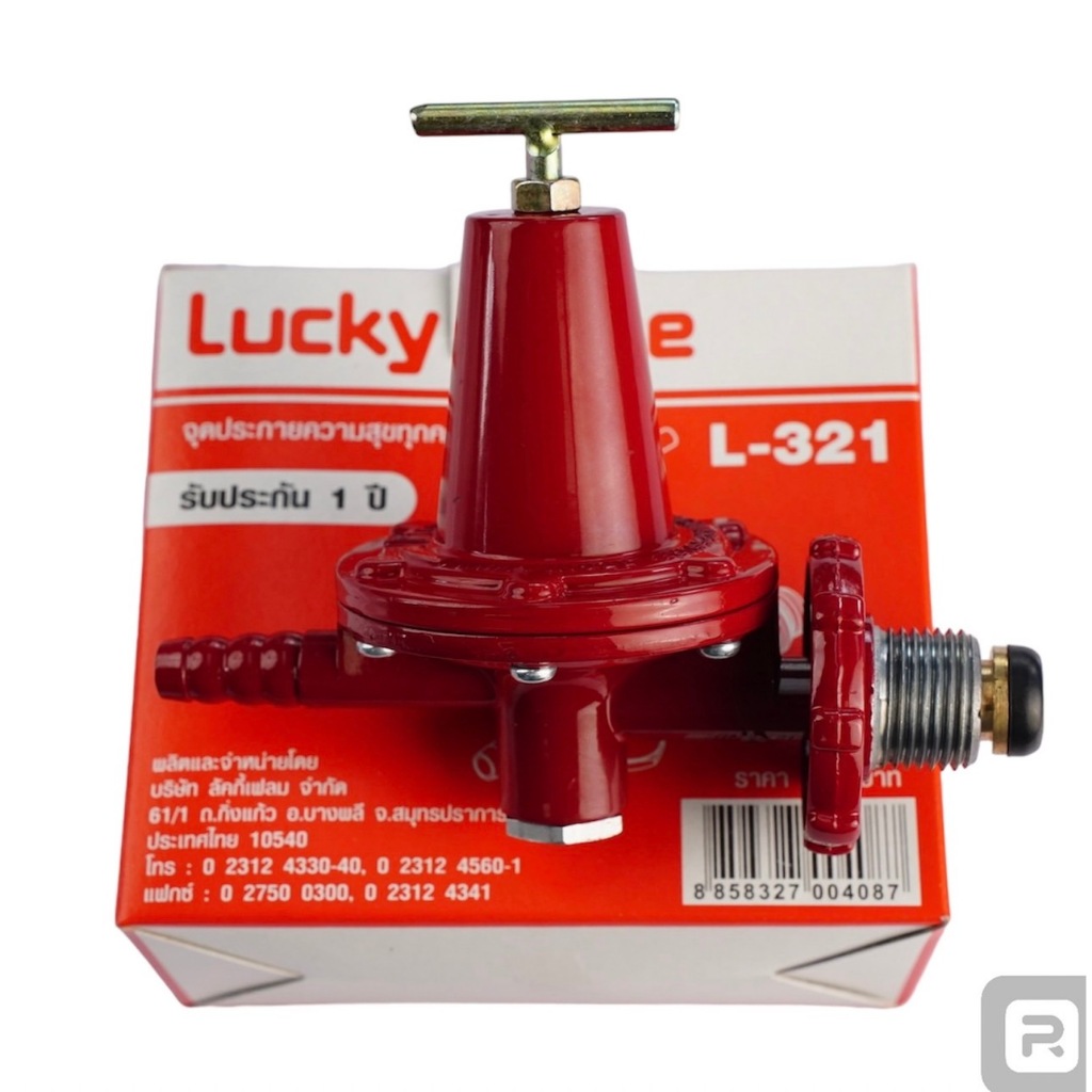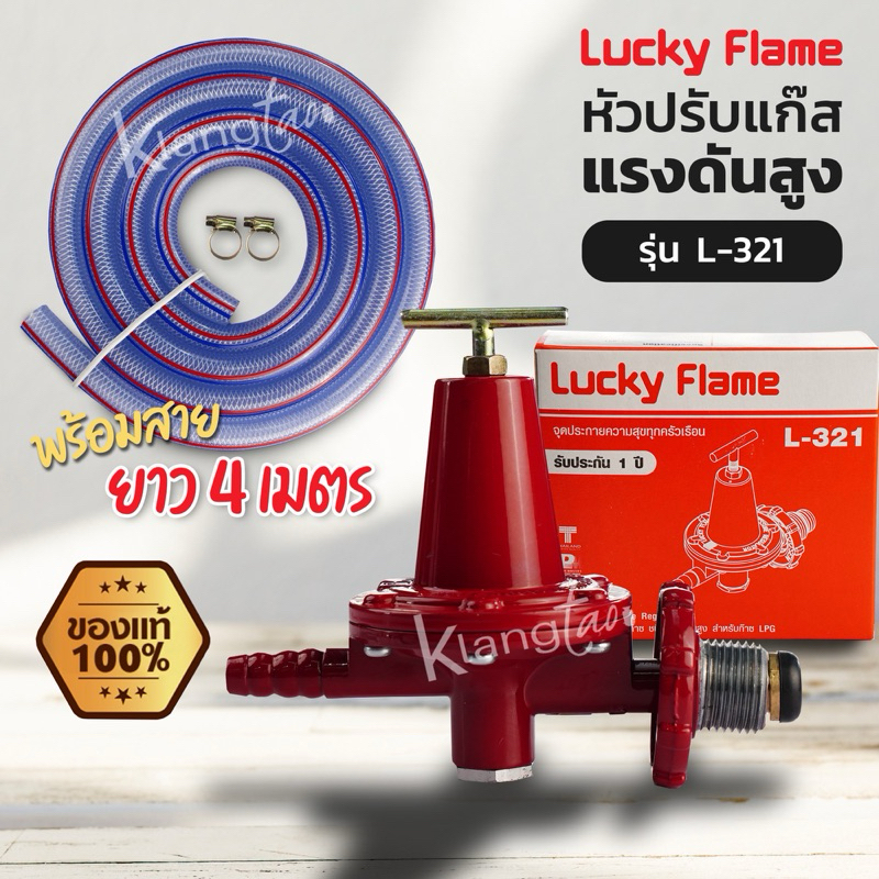 Lucky Flame หัวปรับแก๊สแรงดันสูง รุ่น L-321 พร้อมสายแก๊สอย่างหนา ตัวรัดสาย 2 ตัว เลือกได้